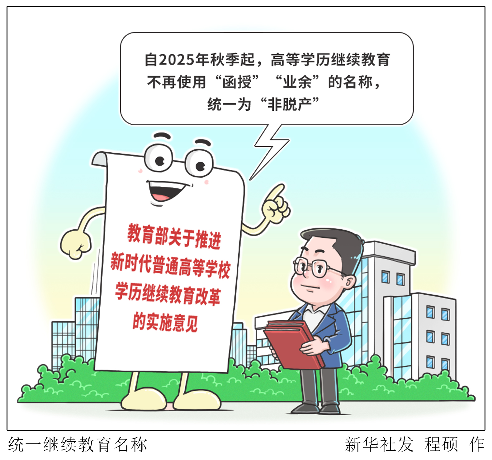 記者8月17日從教育部獲悉,《教育部關于推進新時代普通高等學校學歷繼續(xù)教育改革的實施意見》近日印發(fā),要求自2025年秋季起,高等學歷繼續(xù)教育不再使用“函授”“業(yè)余”的名稱,統(tǒng)一為“非脫產(chǎn)”,主辦高??筛鶕?jù)專業(yè)特點和學生需求等,靈活采取線上線下相結合形式教學。