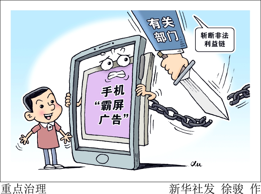 近年來,“霸屏廣告”是我國網絡安全重點治理對象之一。當前有用戶反映,手機反復彈出廣告,既無法關閉又找不到源頭,嚴重影響使用。
