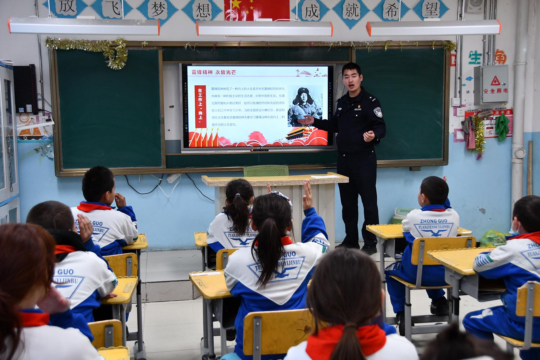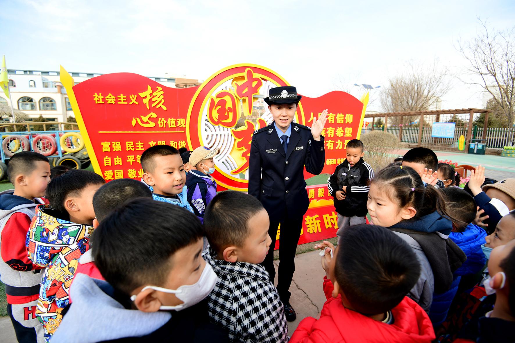3月1日,甘肅省臨澤縣公安局民輔警走進轄區(qū)幼兒園,向小朋友們講述雷鋒精神的時代內(nèi)涵和學(xué)習(xí)雷鋒精神的重要意義,讓雷鋒精神代代傳承。
