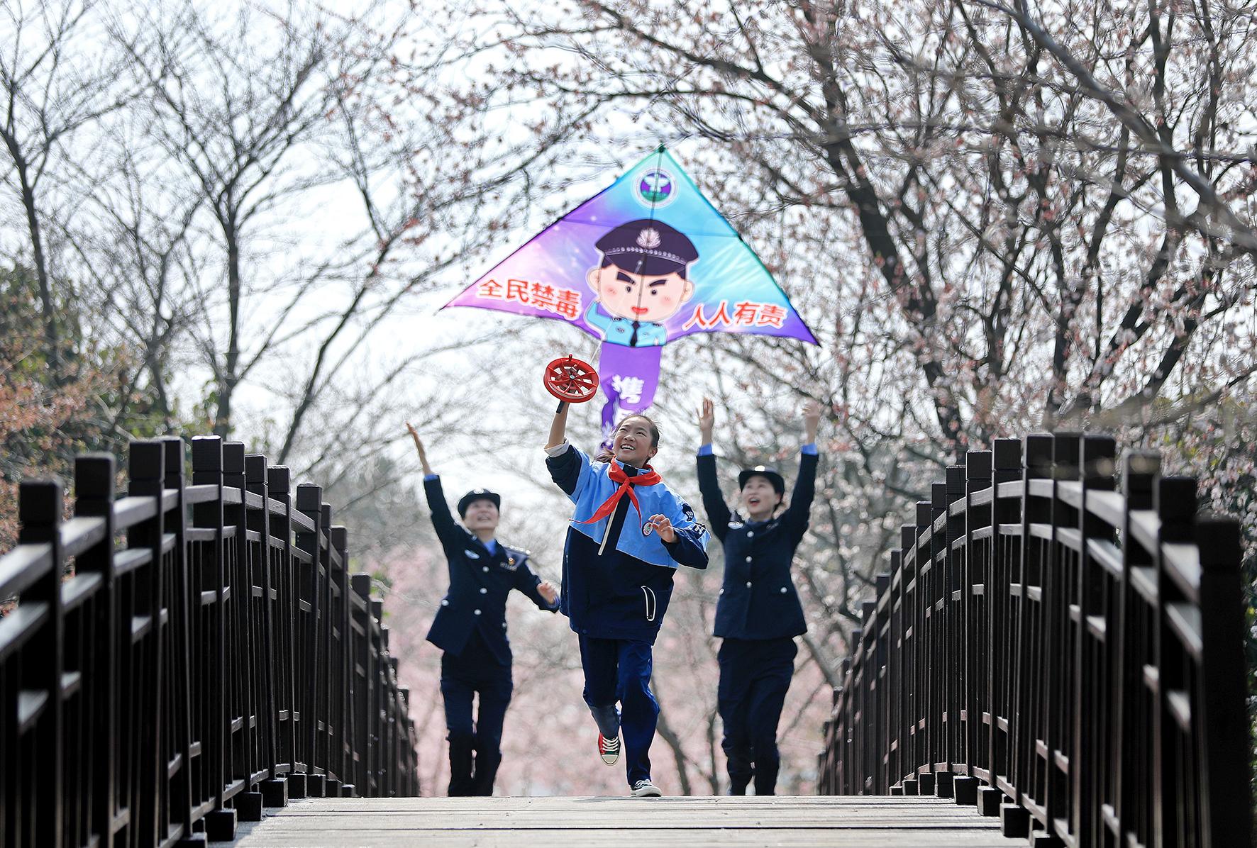 3月9日,湖北省沙洋縣公安局禁毒大隊(duì)民警在曾集鎮(zhèn)雷都村櫻花園,組織春游師生開展“無(wú)毒青春”禁毒風(fēng)箏放飛宣傳活動(dòng)。