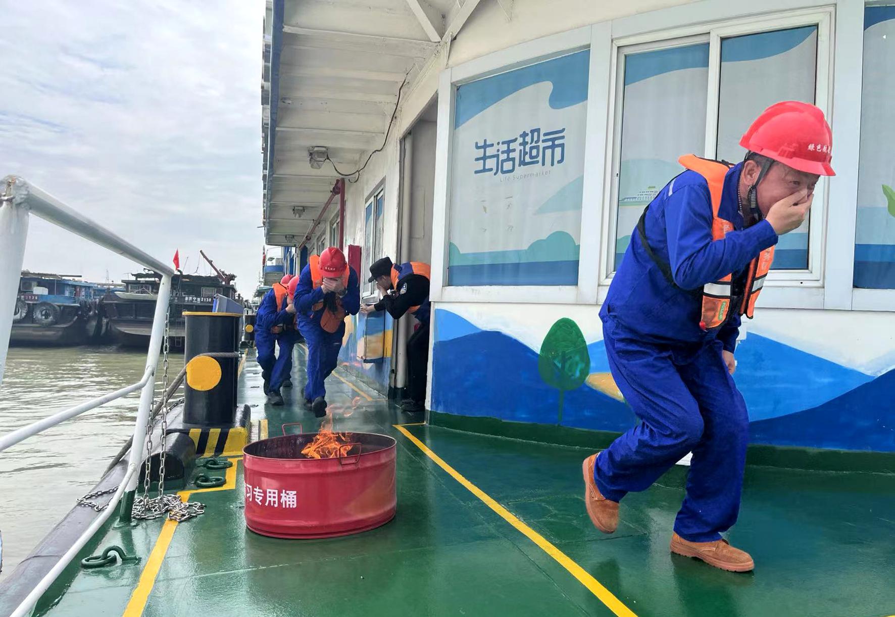 5月11日,長江航運(yùn)公安局南通分局如皋派出所在南通市皋張汽渡開展消防安全演練。