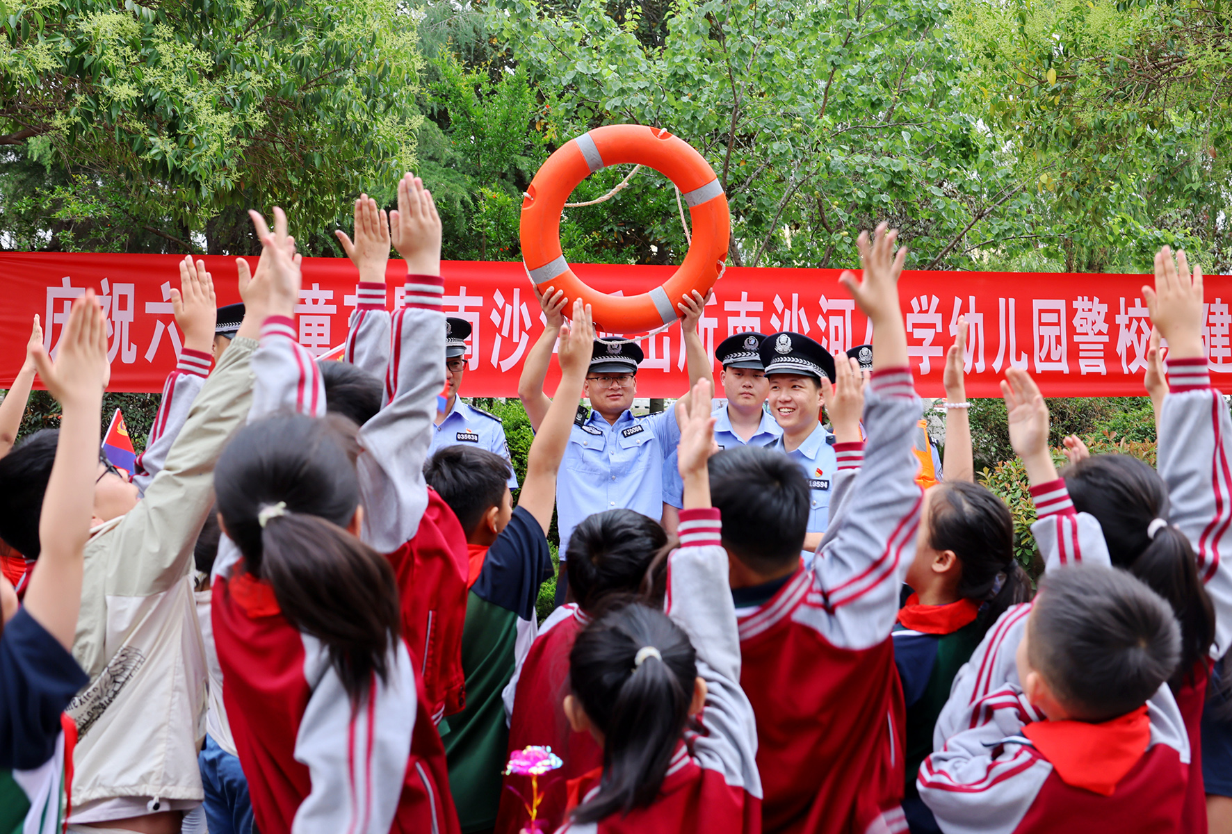 5月26日,山東省滕州市公安局南沙河派出所聯(lián)合巡特警大隊(duì)及南沙河中心小學(xué)、中心幼兒園共同舉辦“快樂成長 平安‘童’行”萌娃進(jìn)警營活動(dòng)。