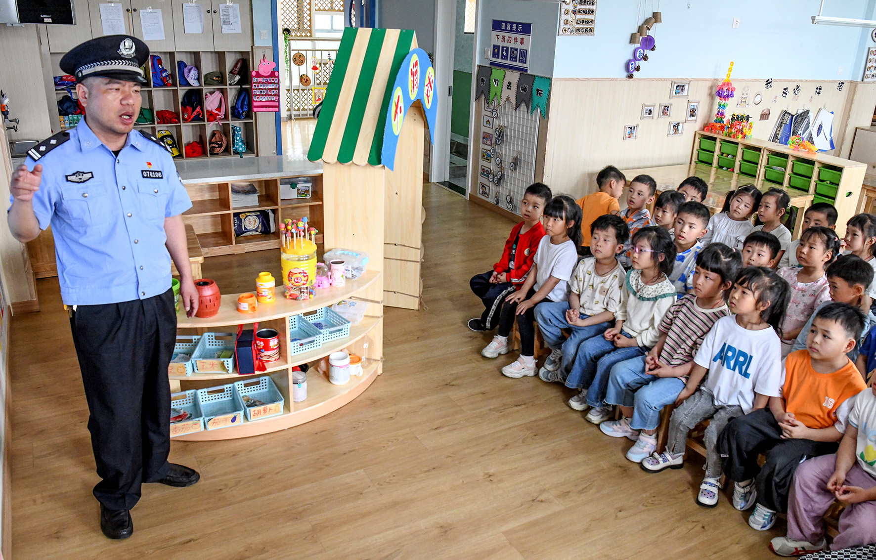 5月30日,江西省共青城市公安局民警來(lái)到轄區(qū)健康城幼兒園,為孩子們送上一堂精彩的平安教育課。