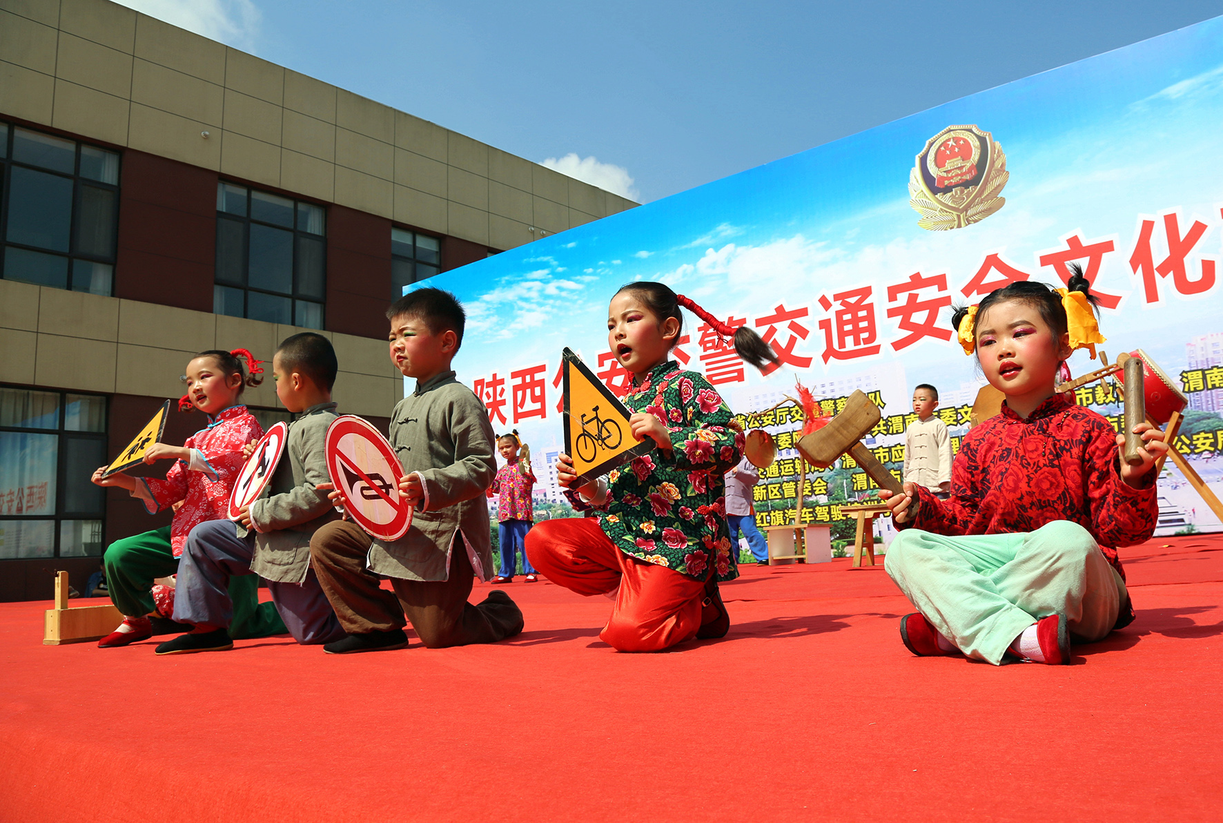 圖為非遺文化黃河老腔娃娃說(shuō)交通安全。