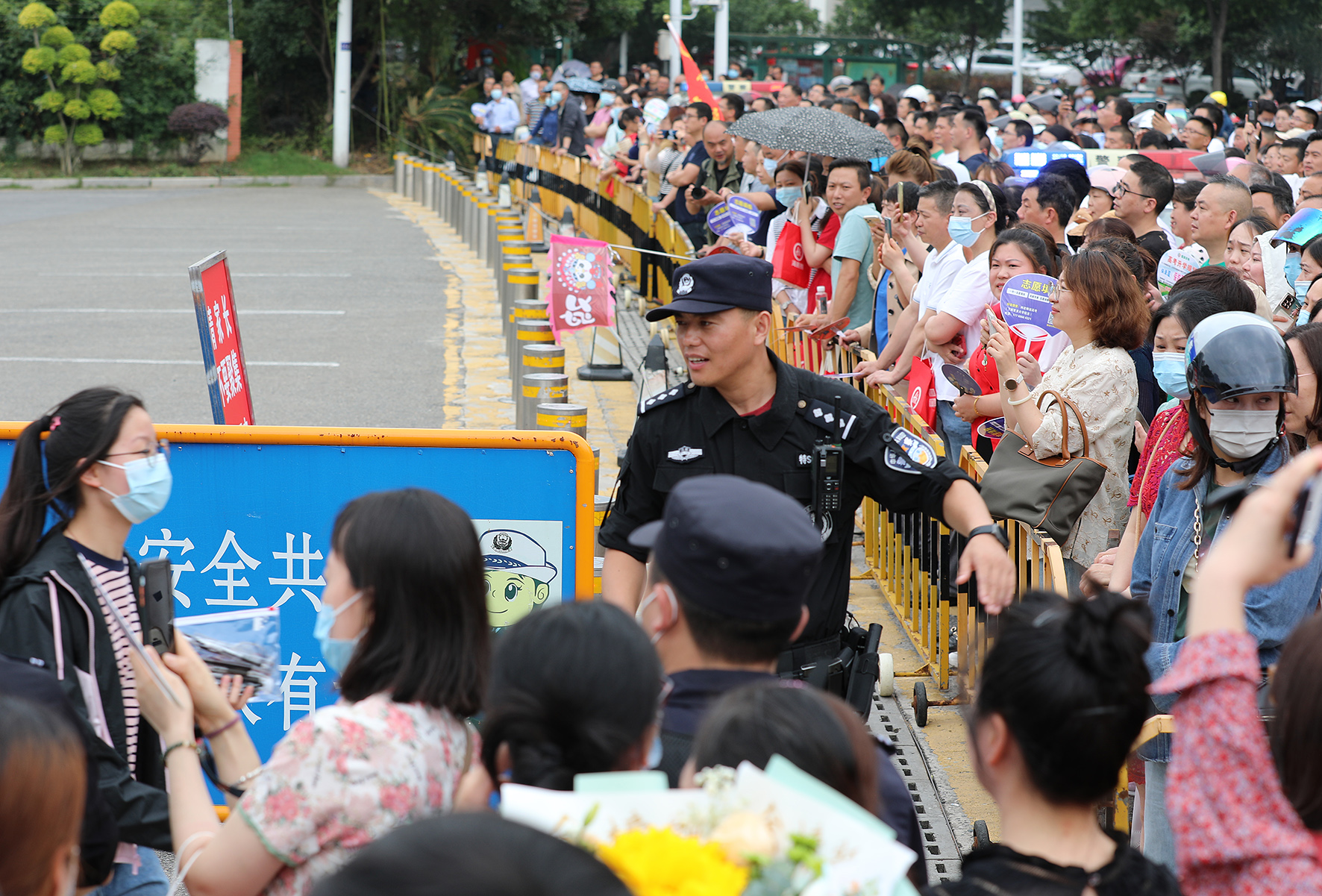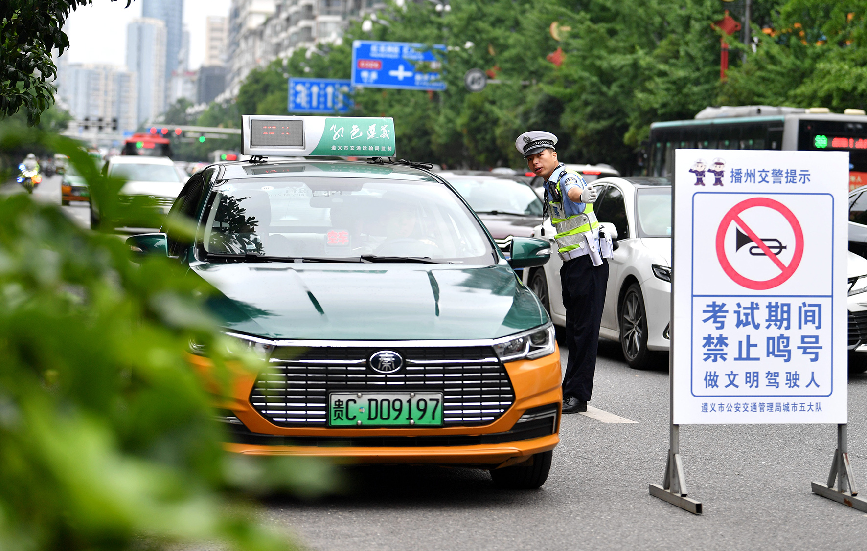 6月7日,貴州省遵義市公安局民警在各考點開展治安巡邏值守、交通秩序維護、為考生提供服務,全力以赴保駕護航。