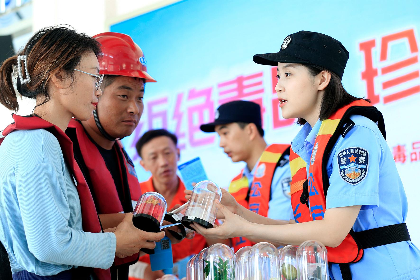 6月25日,太倉出入境邊防檢查站聯(lián)合太倉市公安局禁毒大隊、璜涇派出所等單位,在太倉港口岸開展“健康人生 綠色無毒”普法宣傳活動。