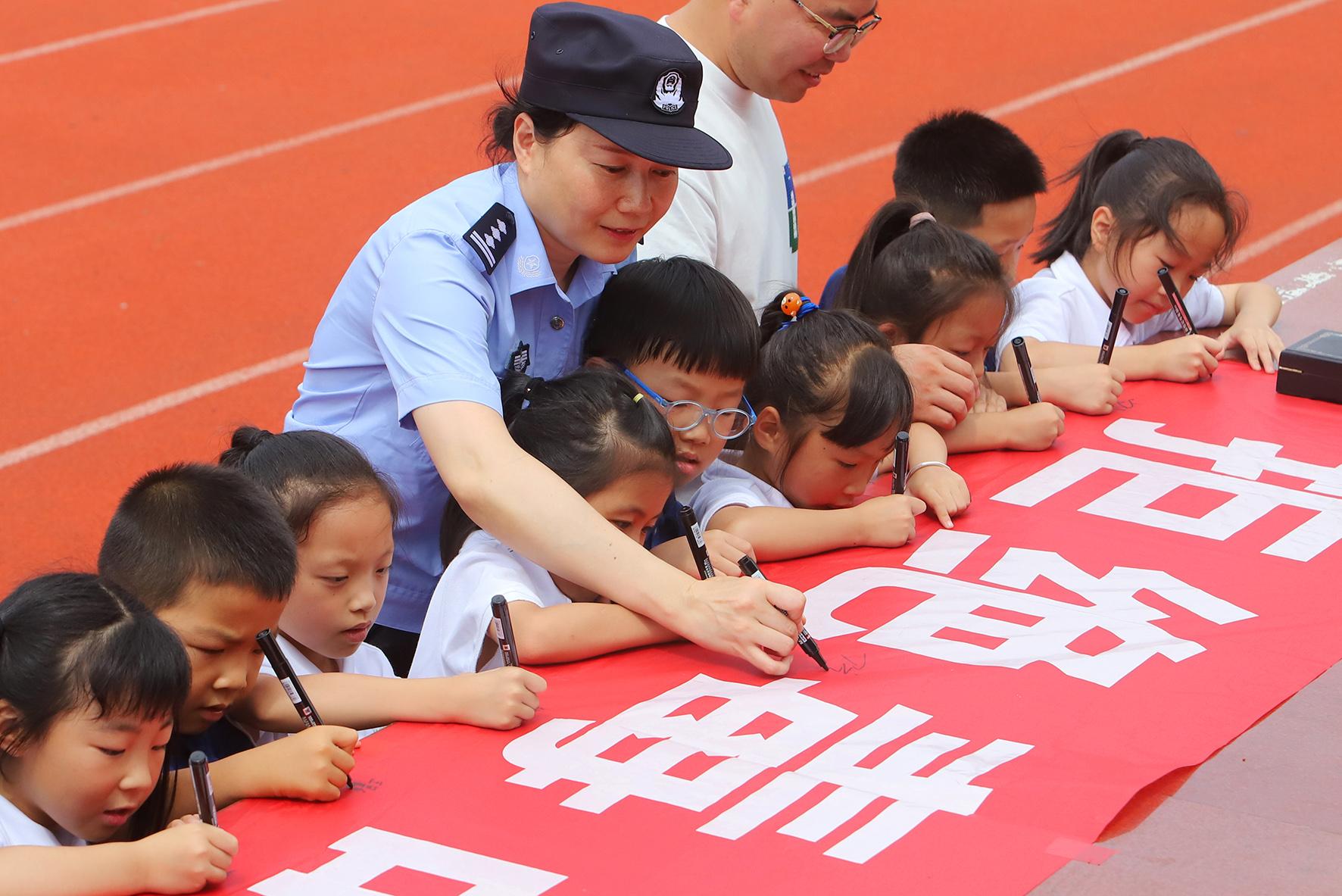 6月25日,浙江省臺州市公安局路南派出所民警走進路南小學(xué),通過觀看禁毒展板、講述禁毒故事、“拒絕毒品”橫幅簽字等形式,對學(xué)生進行禁毒教育。