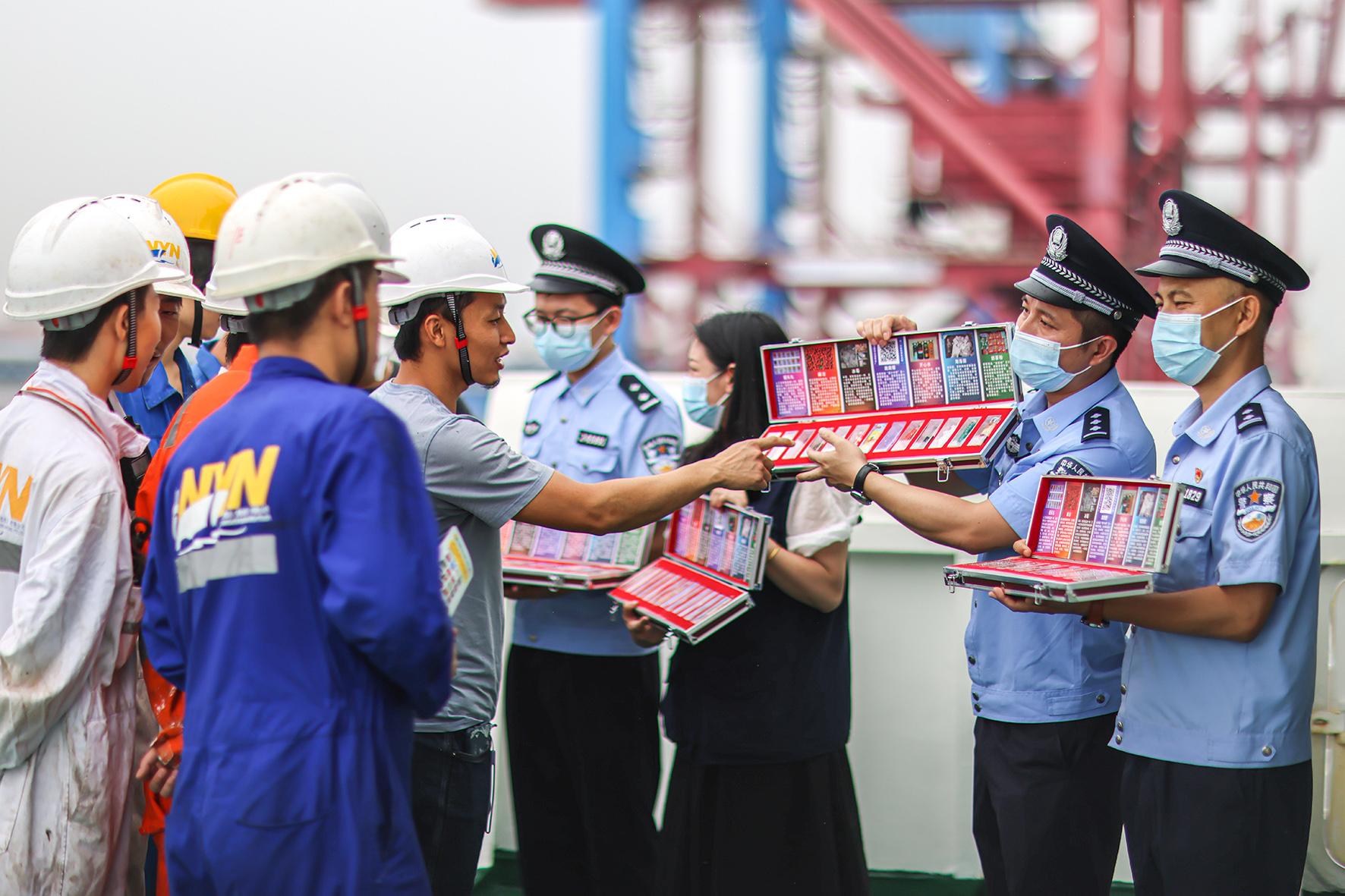 6月20日,長江航運公安局鎮(zhèn)江分局聯(lián)合鎮(zhèn)江市公安局潤州分局在六圩水上綠色綜合服務(wù)區(qū)開展水上禁毒宣傳。