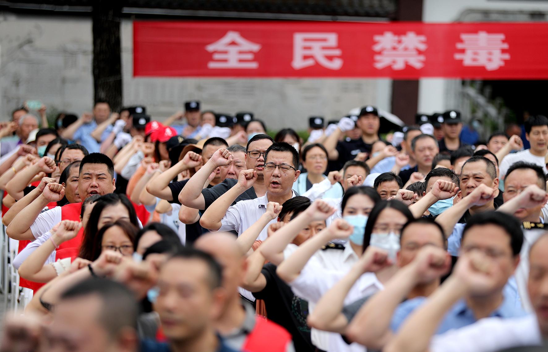 6月25日,湖北省荊門市禁毒委舉行“6·26”國(guó)際禁毒日集中宣傳暨銷毀毒品活動(dòng),300多名市民集體進(jìn)行禁毒宣誓。