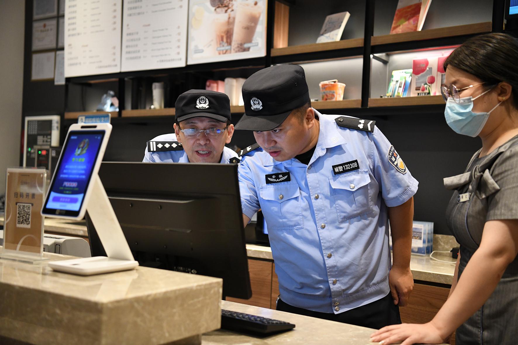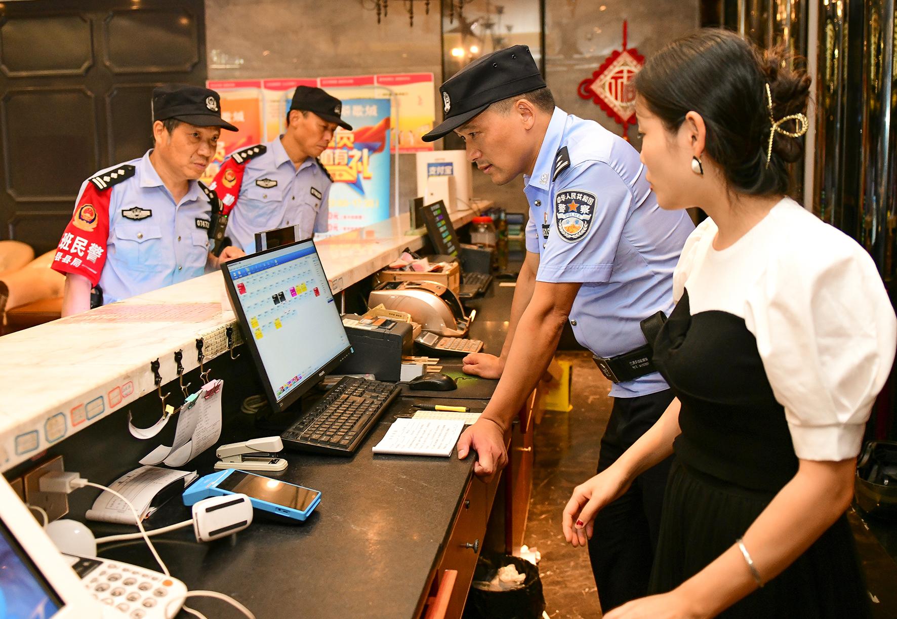 7月9日晚,安徽省馬鞍山市和縣公安局民警正在對歌廳、網(wǎng)吧等行業(yè)場所開展檢查,及時發(fā)現(xiàn)并消除治安隱患。