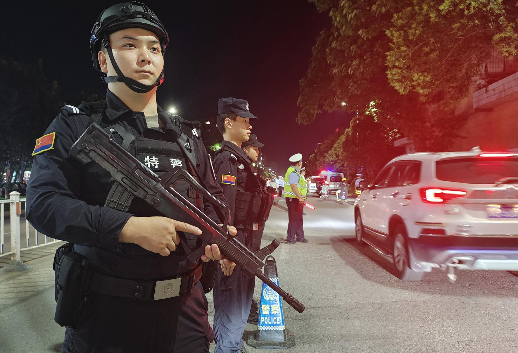 7月9日夜,安徽省舒城縣公安局城中派出所組織警力在縣城區(qū)人員密集場所加強(qiáng)巡邏守護(hù)。