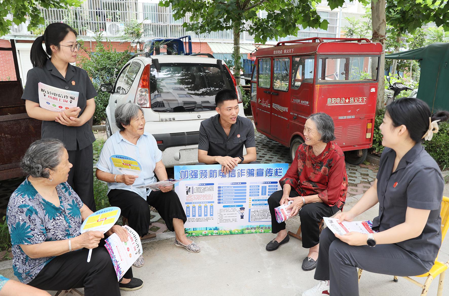 7月19日,山東省臨沭縣人民法院干警走進(jìn)南溝頭社區(qū),開展防范電信網(wǎng)絡(luò)詐騙普法宣傳活動。