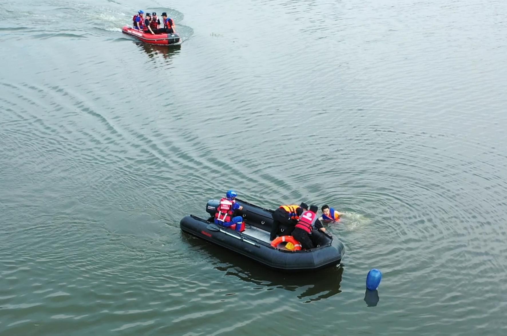 7月25日,安徽省馬鞍山市公安局特警支隊(duì)聯(lián)合藍(lán)天救援隊(duì)在雨山區(qū)節(jié)慶廣場(chǎng)水域開(kāi)展防汛救援應(yīng)急演練。