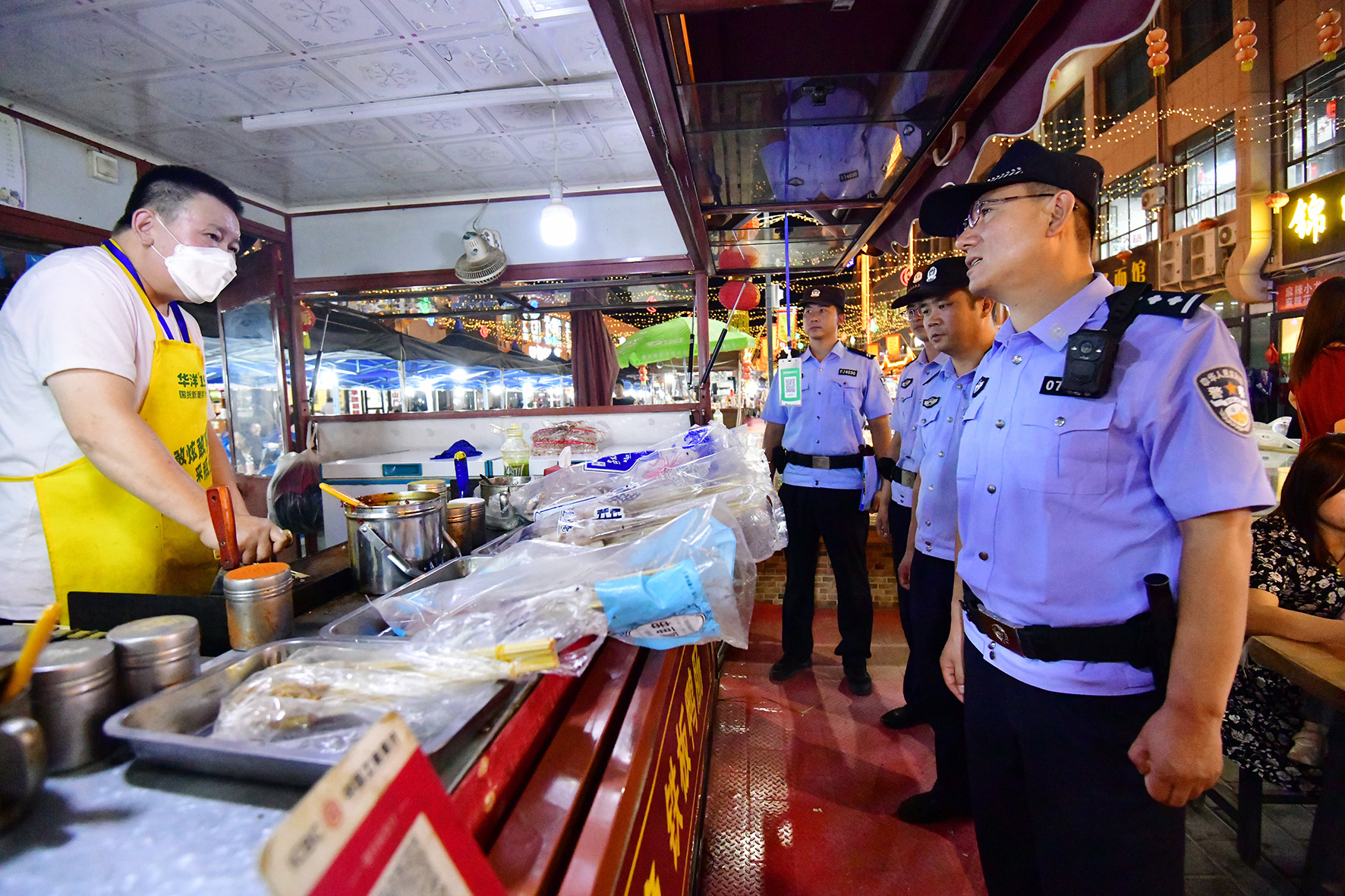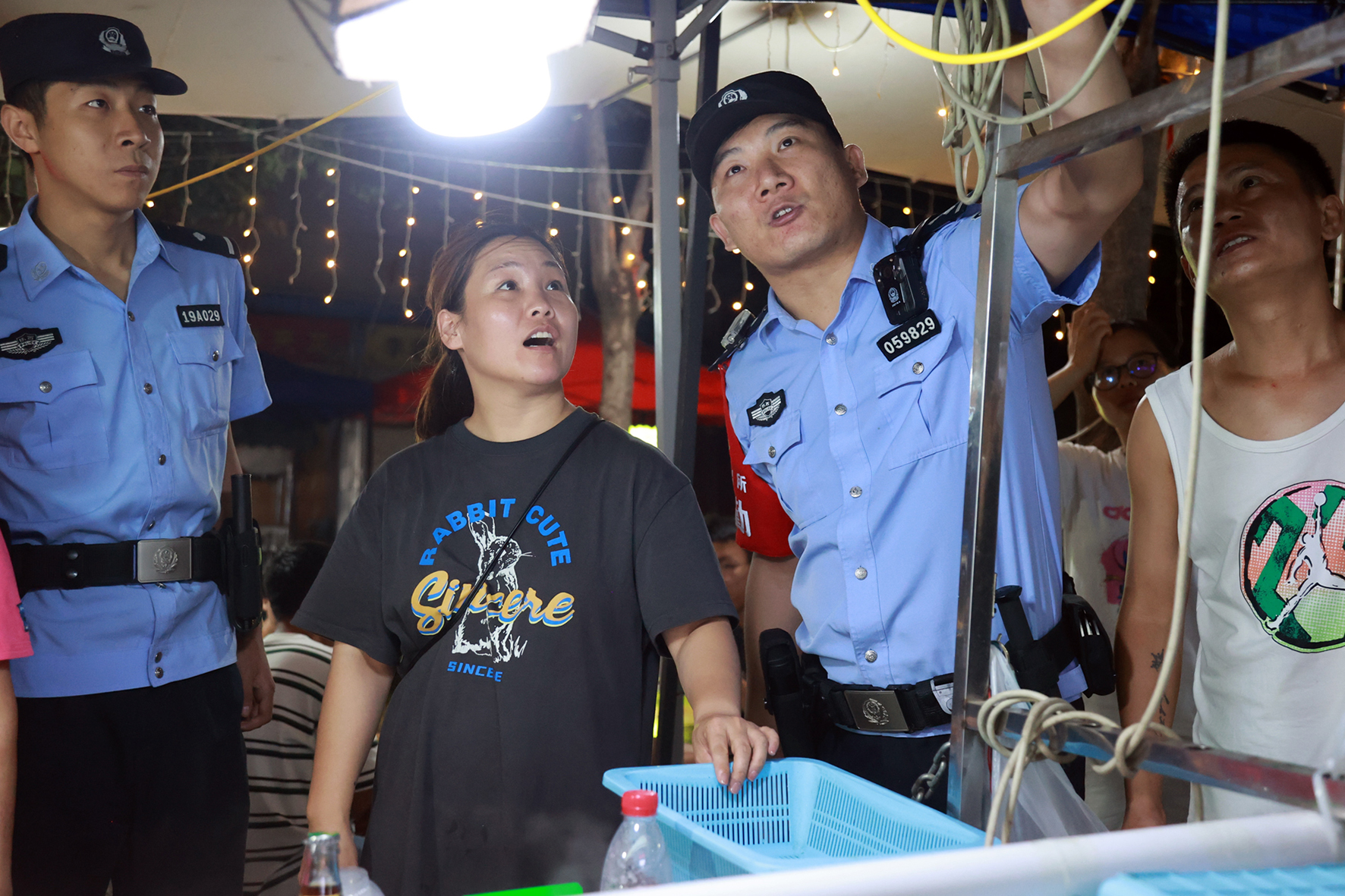 8月11日,山東省濟南市公安局市中區(qū)分局民警深入轄區(qū)商業(yè)街區(qū)、娛樂場所、燒烤攤點和城中村等重點區(qū)域,開展巡邏防控、治安清查、普法宣傳,著力整治突出治安問題。