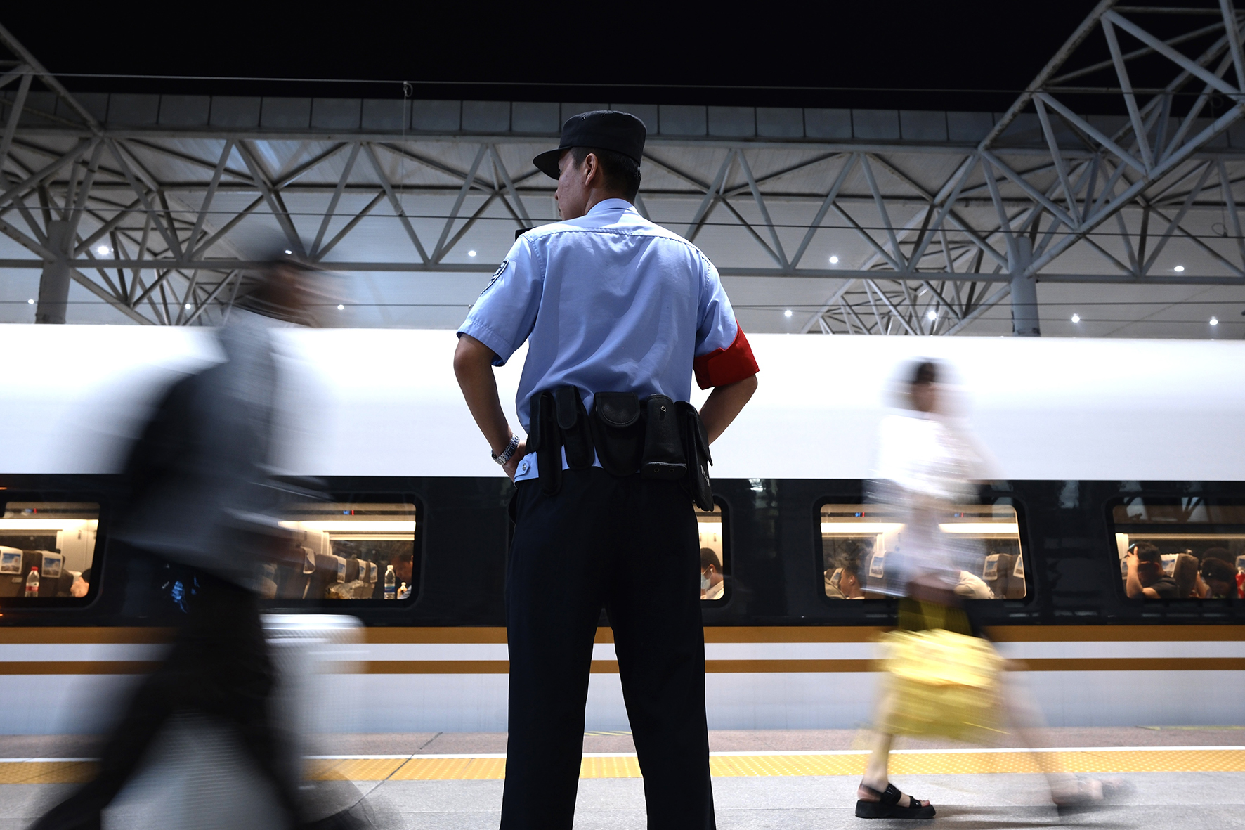 8月11日晚,隨著暑運客流高峰的到來,杭州鐵路公安處嘉興站派出所組織民警積極維護車站秩序,加強治安防范,全力護航旅客出行平安。