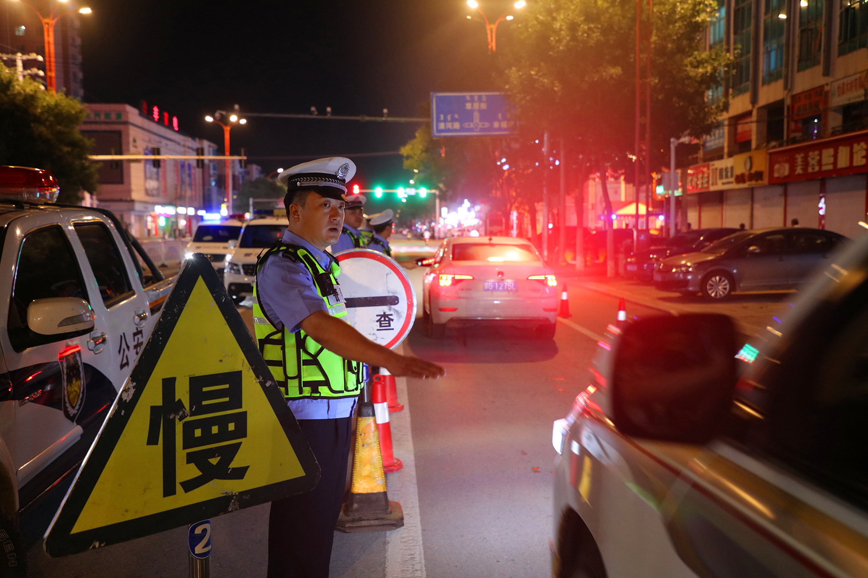 圖為8月12日晚,奈曼旗公安局交管大隊民警在重點路段開展夜查。