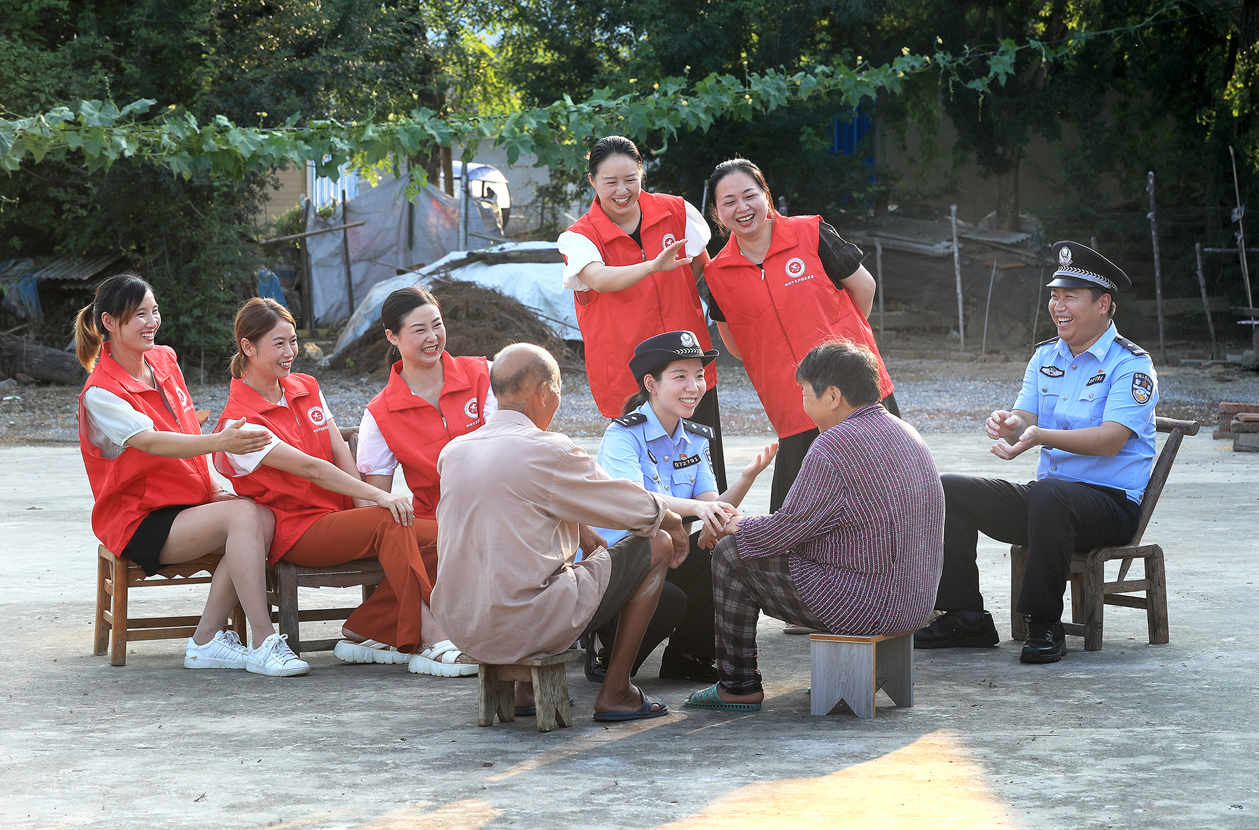 圖為8月14日,民警和網(wǎng)格員在九堰村為村民化解地界糾紛。