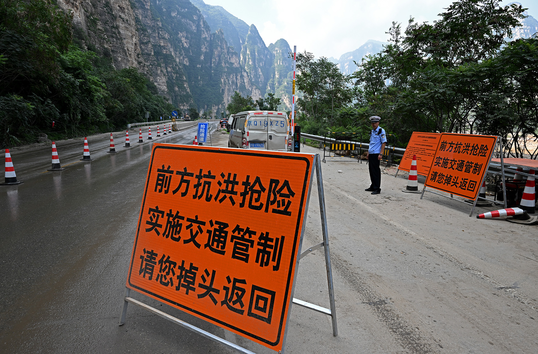 7月29日至8月2日,北京遭遇特大暴雨災(zāi)害,房山區(qū)成為人員財(cái)產(chǎn)損失最嚴(yán)重的地區(qū)之一。張坊檢查崗是進(jìn)入受災(zāi)嚴(yán)重地區(qū)的第一道崗,在被損毀的道路尚未恢復(fù)通行能力前,只有救援相關(guān)車輛和當(dāng)?shù)卮迕癖辉试S進(jìn)入。“當(dāng)前首要任務(wù)是保證救援保障力量的順暢進(jìn)出?!比f(wàn)寧大隊(duì)民警宗曉磊告訴記者,從7月28日汛前備勤起,他和同事們就堅(jiān)守在這條進(jìn)山通道,迄今已20多天。