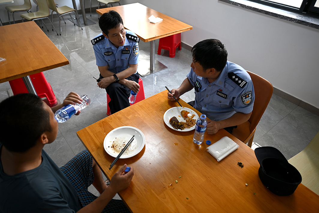 安置點(diǎn)警務(wù)站民警除每日定時(shí)巡邏,還要不時(shí)走訪受災(zāi)群眾,了解情況。