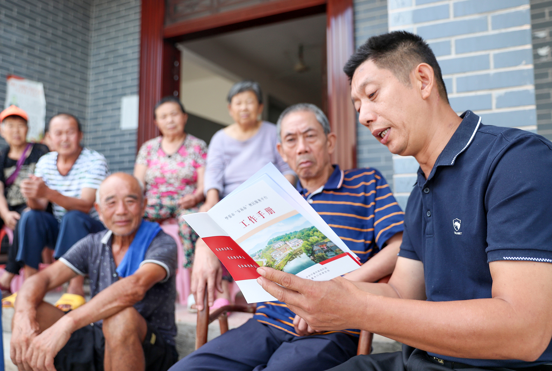 圖一:8月30日,祿市鎮(zhèn)的工作人員在涼水井村一農(nóng)家宣傳“安易辦”網(wǎng)絡(luò)辦事便民服務(wù)平臺。