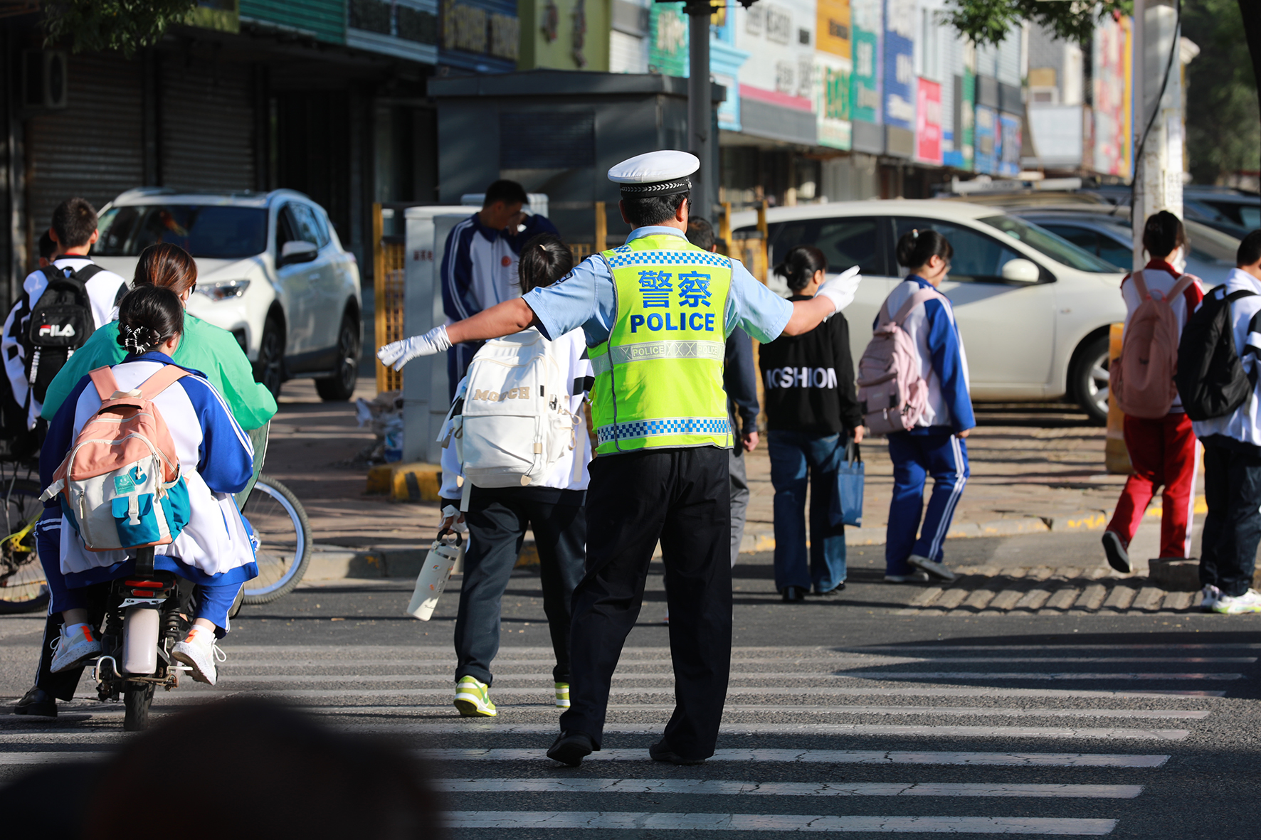 8月30日,遼寧省阜新市公安局交警支隊細河交警大隊民警在護學崗執(zhí)勤。