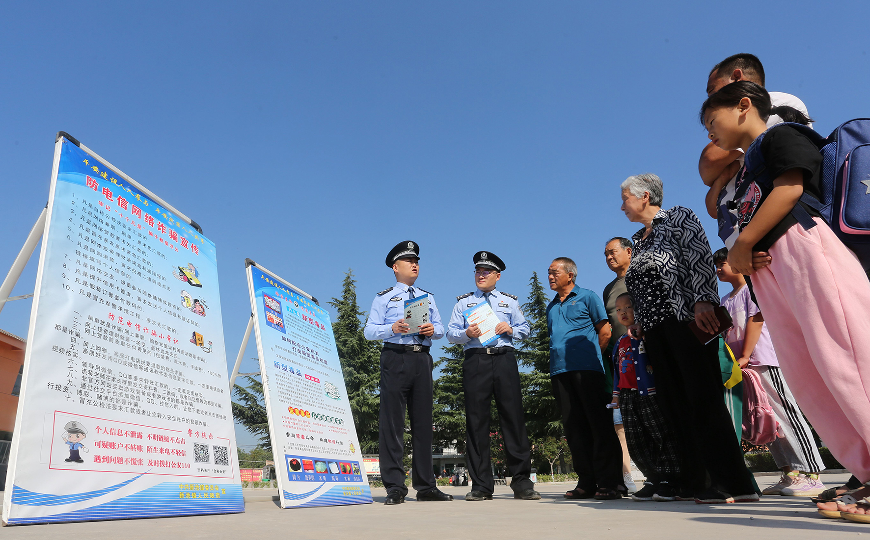 8月31日,陜西省渭南市合陽縣新池鎮(zhèn)中心小學,民警向?qū)W生和家長講解電信詐騙的危害。