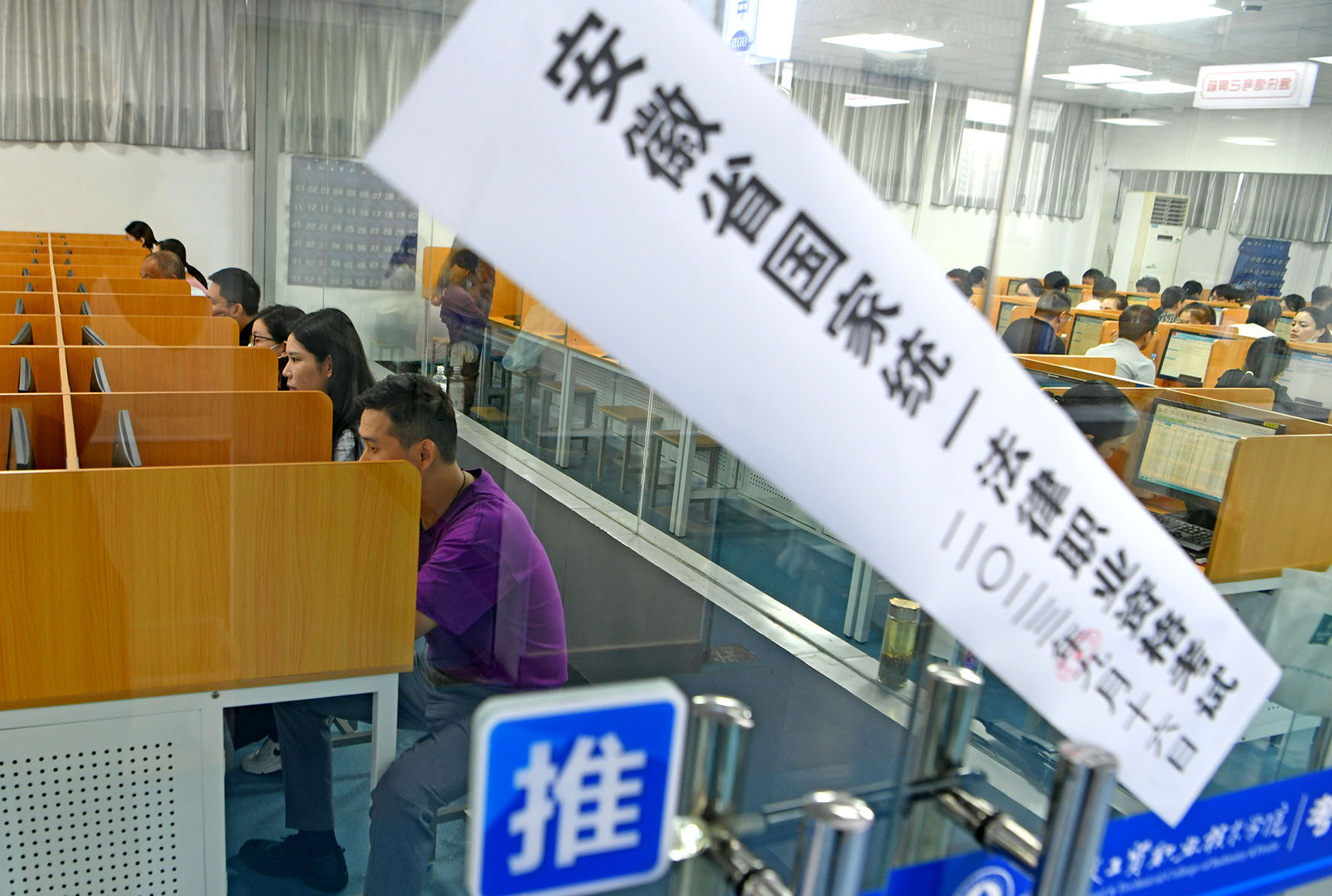 9月16日,安徽省淮南市考生在安徽工貿(mào)職業(yè)技術(shù)學(xué)院考點參加2023年國家統(tǒng)一法律職業(yè)資格考試客觀題考試。