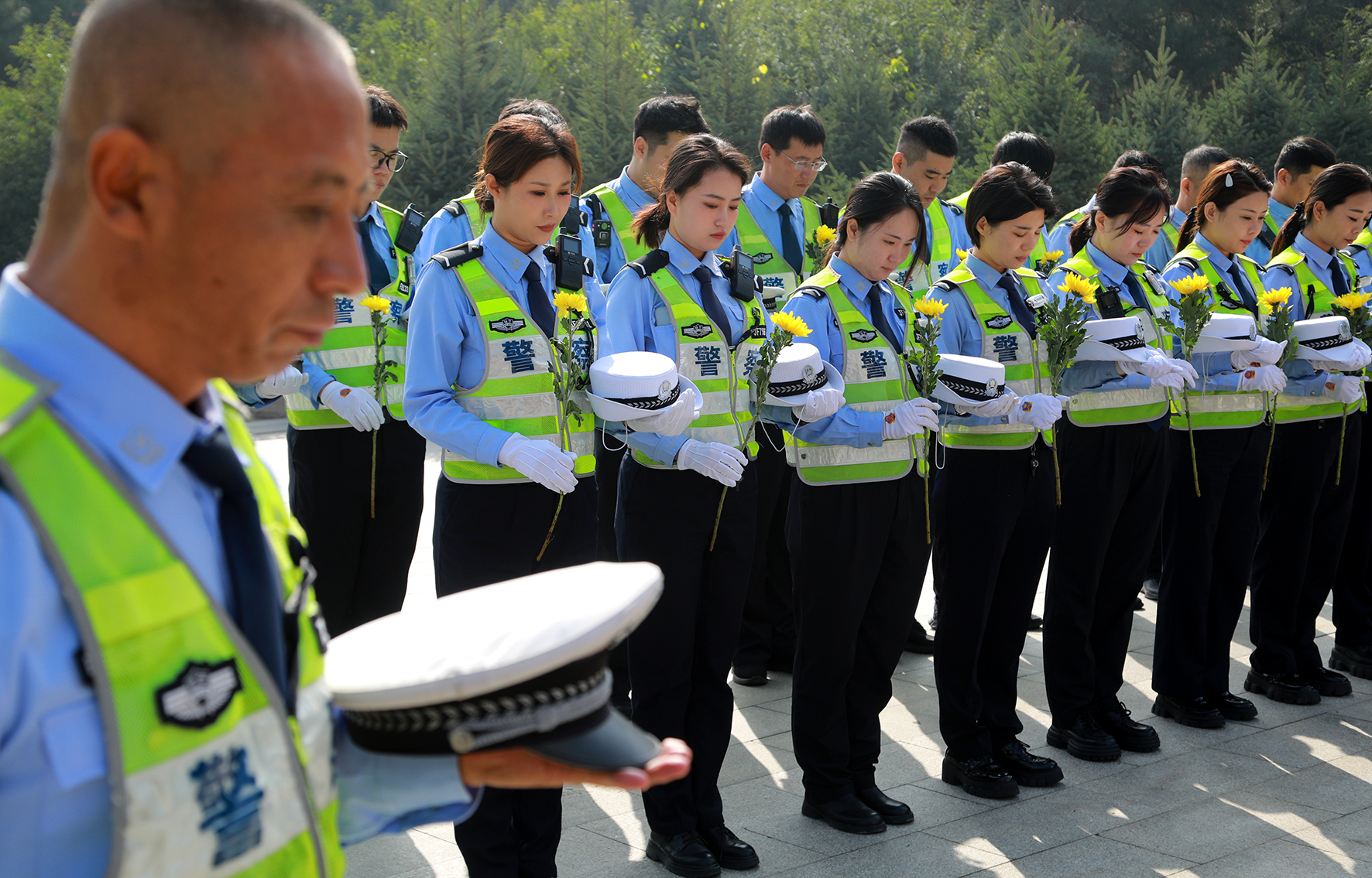 9月27日,遼寧沈陽出入境邊防檢查站組織民警到抗美援朝烈士陵園開展“緬懷先烈”主題黨日活動。