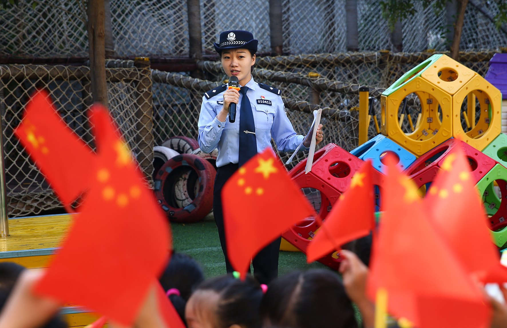 9月28日,山東省濟(jì)南市公安局市中區(qū)分局民警來(lái)到幼兒園開(kāi)展愛(ài)國(guó)主義教育,喜迎國(guó)慶節(jié)。