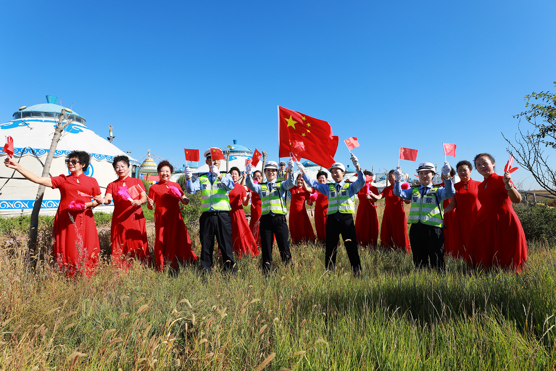 9月28日,遼寧省阜新市公安局交警支隊(duì)海州交警大隊(duì)聯(lián)合西花園社區(qū)開(kāi)展“慶國(guó)慶、迎中秋、唱紅歌”慶祝活動(dòng)。
