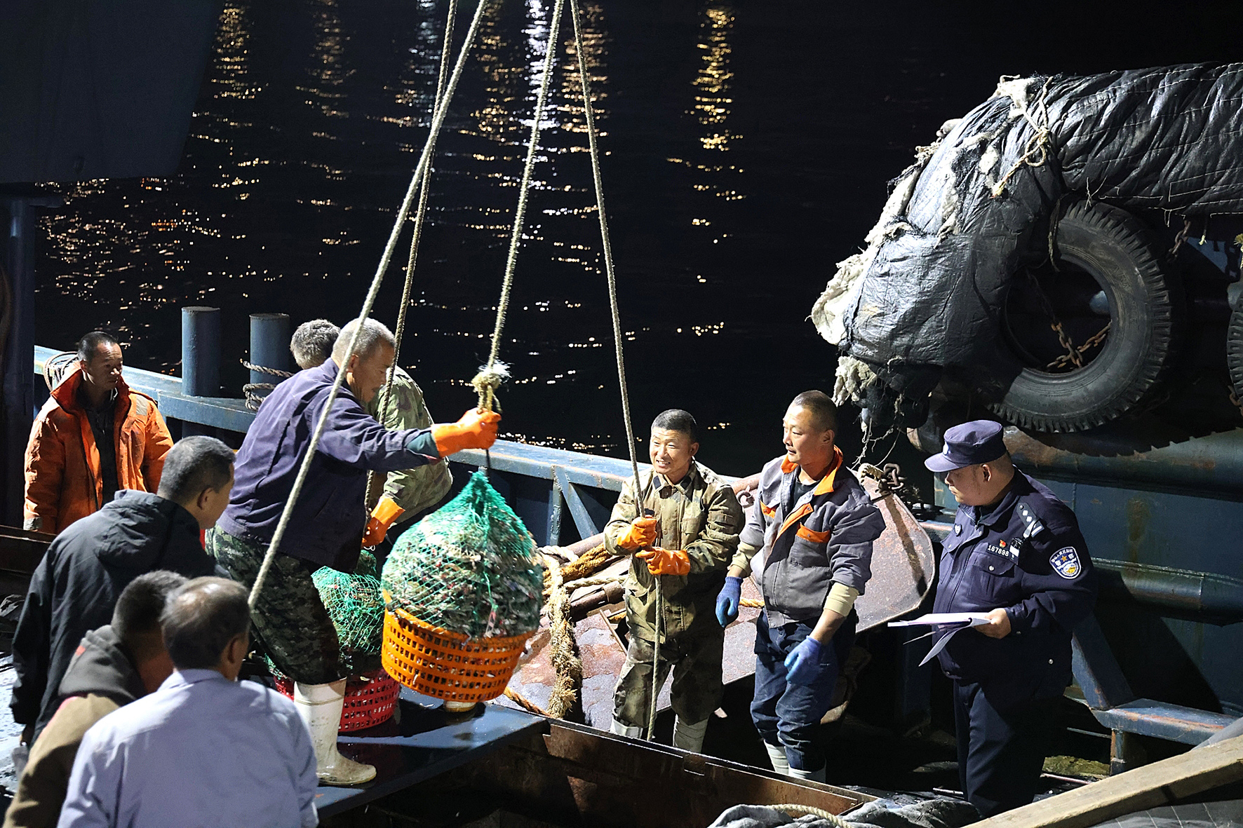 10月6日,遼寧丹東邊境管理支隊(duì)新溝邊境派出所民警對(duì)漁船出海捕撈的海產(chǎn)品進(jìn)行報(bào)備清點(diǎn)核查。