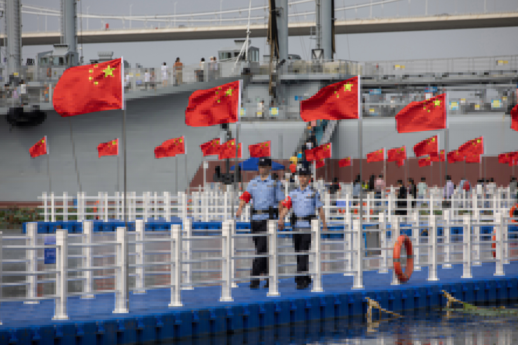 10月1日,長(zhǎng)江航運(yùn)公安局鎮(zhèn)江分局泰州派出所民警在泰州海軍艦艇文化園執(zhí)勤值守。