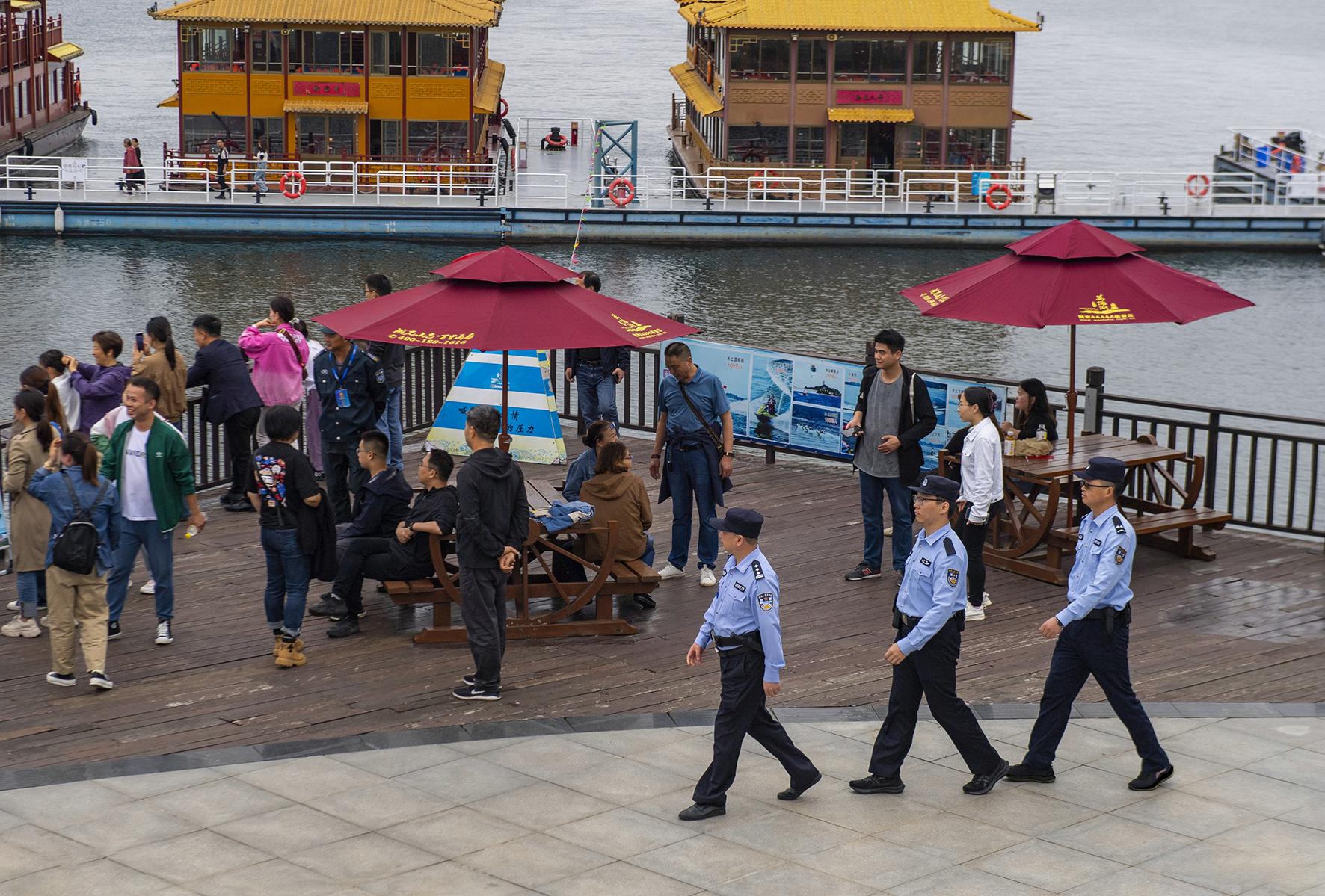 10月4日,安徽省舒城縣公安局旅游警察大隊(duì)民警在風(fēng)景秀麗的萬佛湖風(fēng)景區(qū)內(nèi)巡邏守護(hù)、為游客提供幫助。