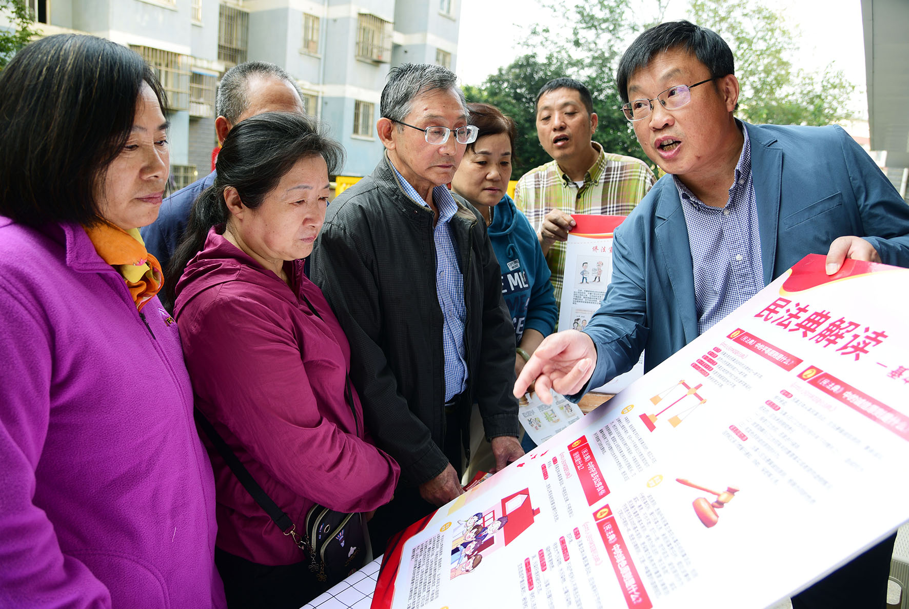 圖為律師通過案例為居民解讀民法典相關(guān)知識。