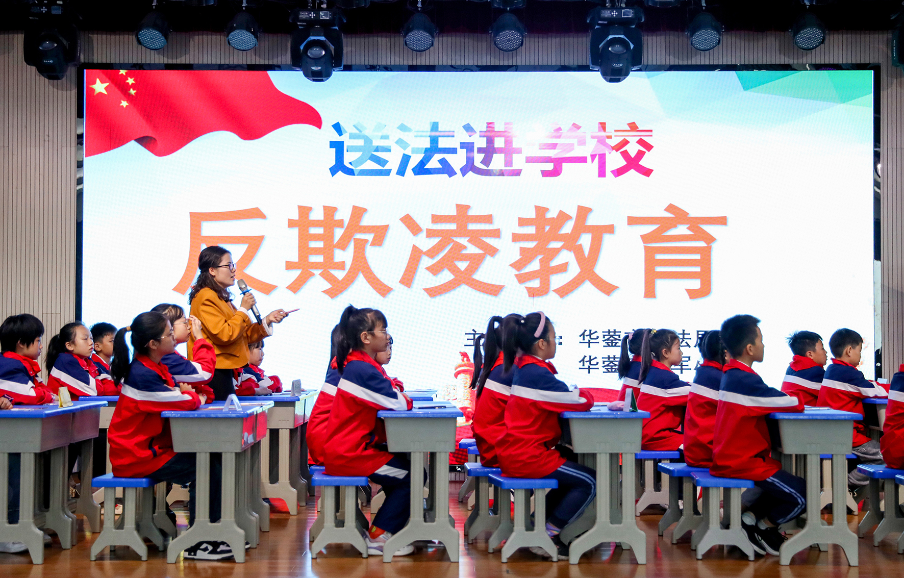 四川省華鎣市司法局、教育和體育局結合明年1月1日起施行的未成年人網絡保護條例,組織開展“與法同行 拒絕欺凌”為主題的法治宣傳活動。
