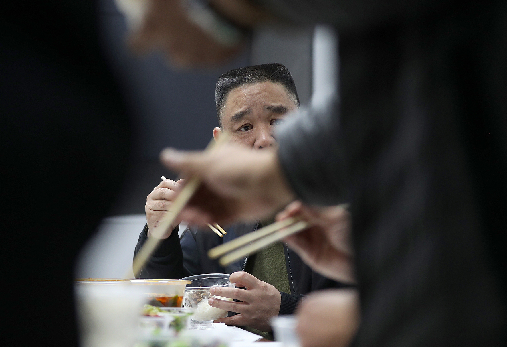 1、晚8點(diǎn)半,民警邊吃盒飯邊研判案情。