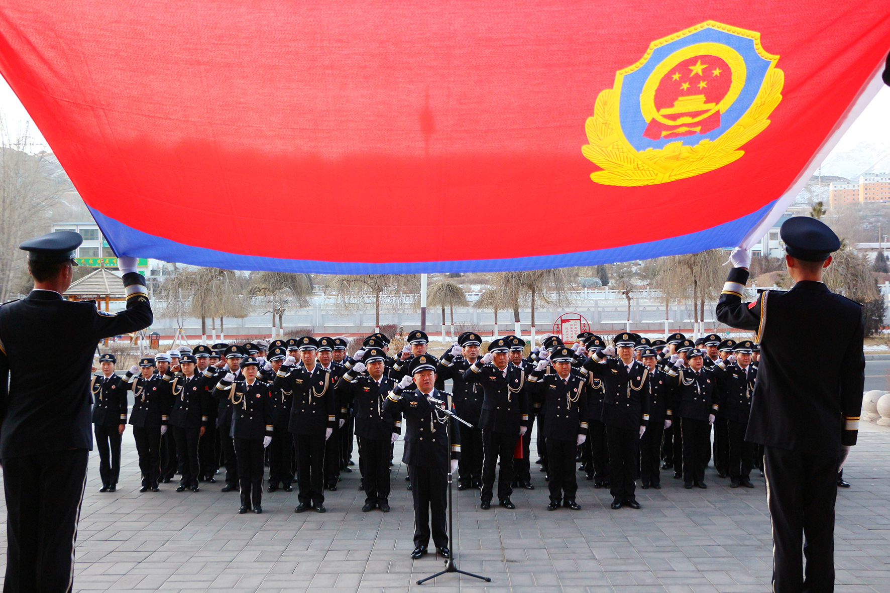 1月10日,陜西省潼關(guān)縣公安局舉行莊嚴(yán)的升警旗儀式,重溫入警誓詞。