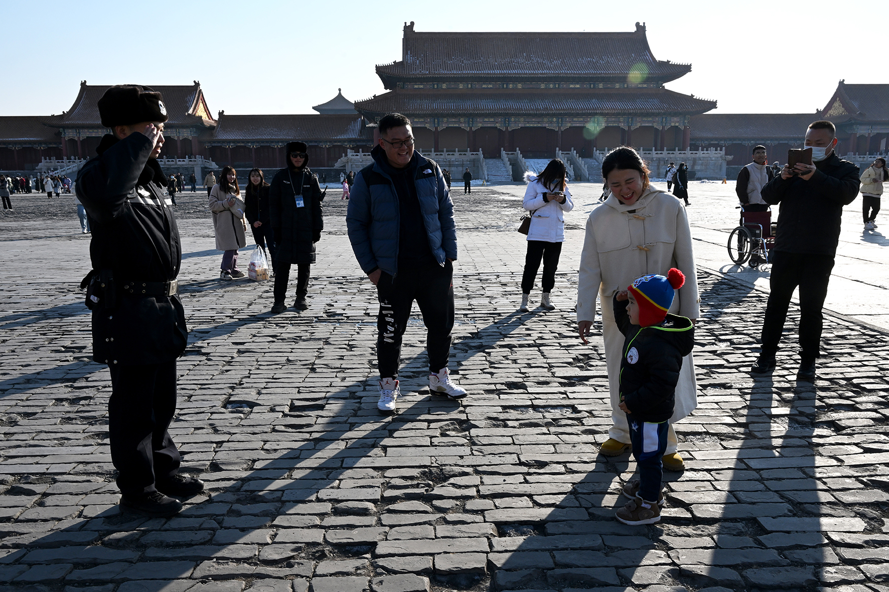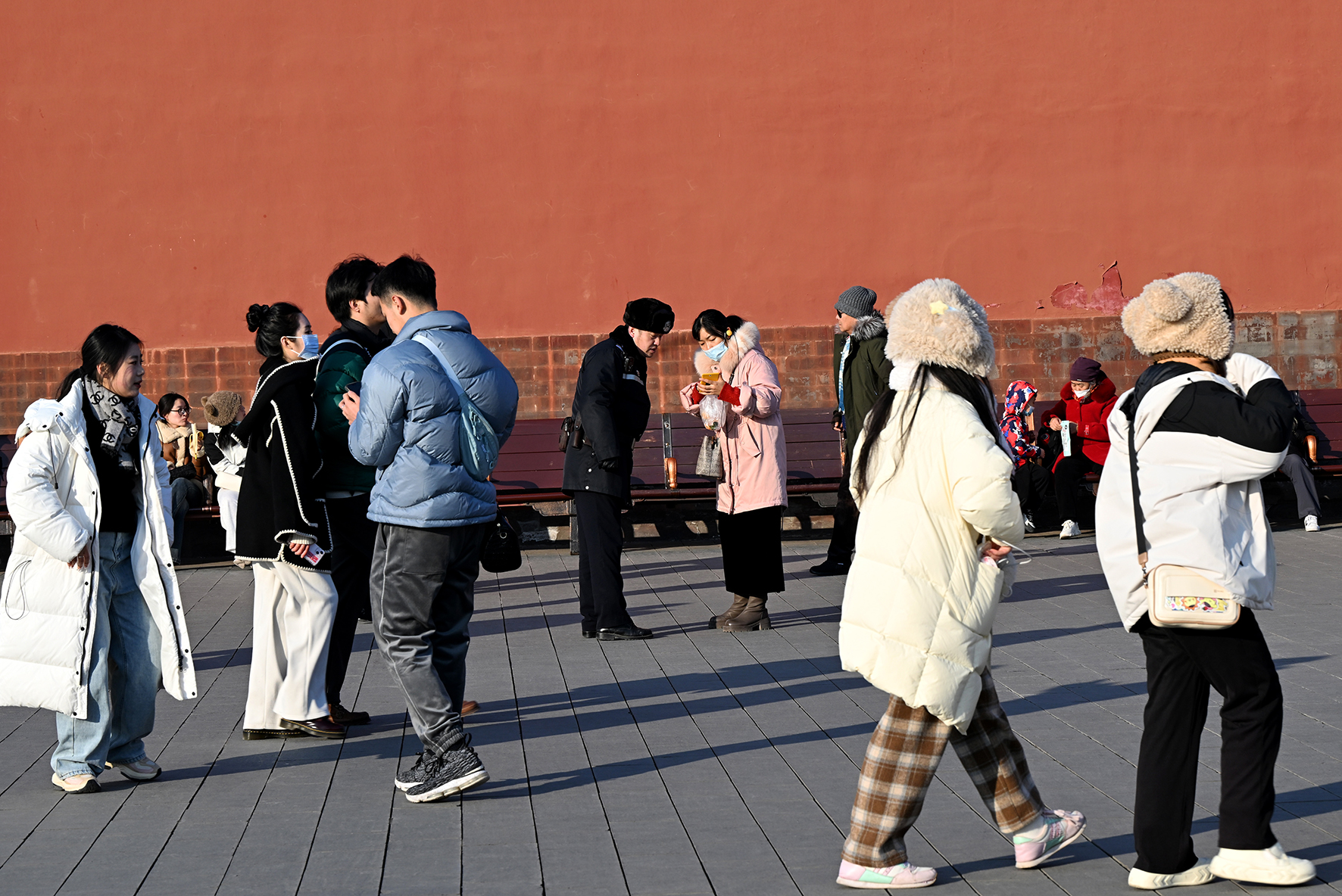 太和殿前,一位與家人走散的老人向民警尋求幫助。故宮派出所組建了“皇城小警”尋人找物微信群,搭建起守護游客安全的便民服務網絡。