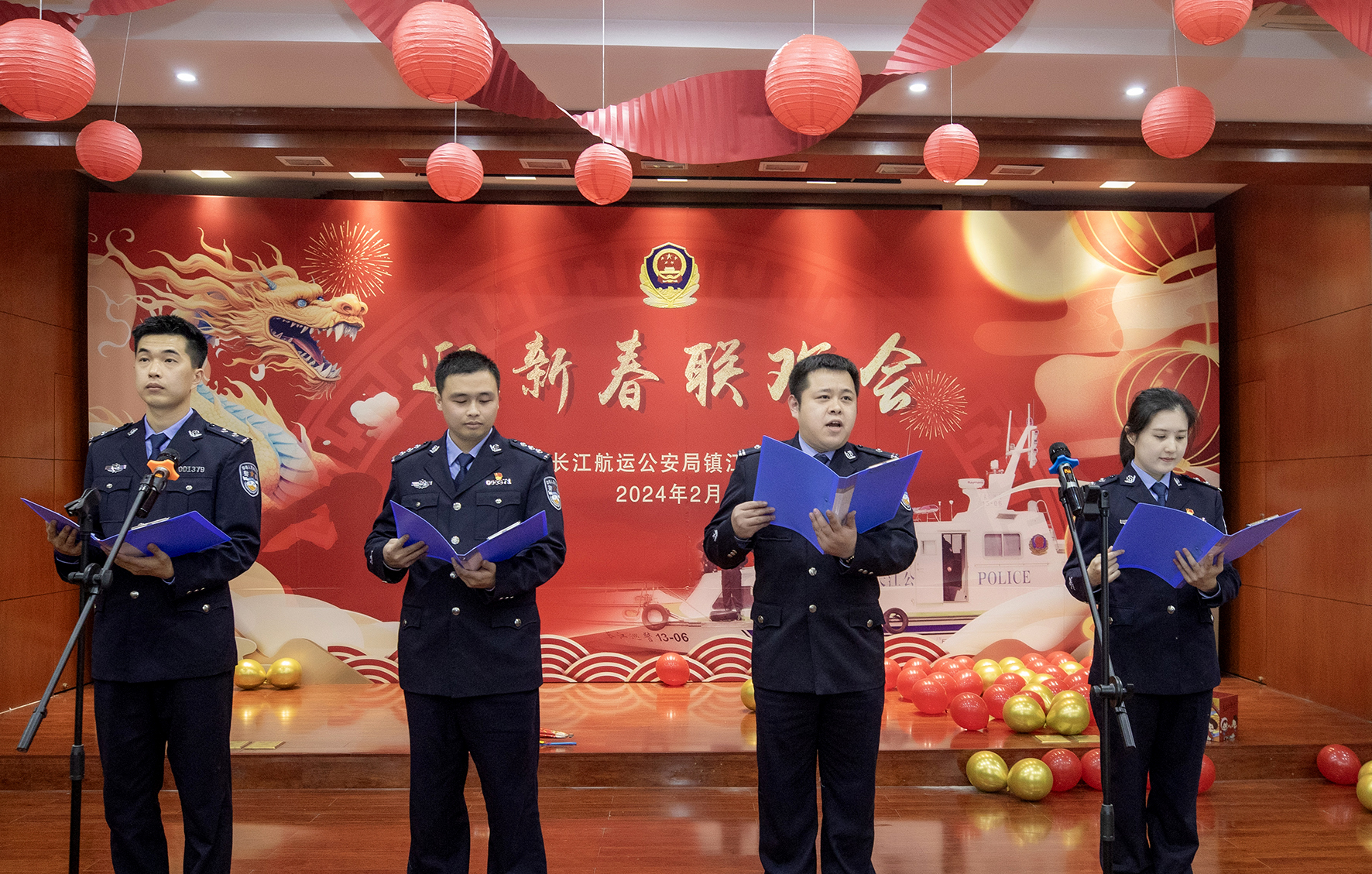 2月4日,長(zhǎng)江航運(yùn)公安局鎮(zhèn)江分局組織開(kāi)展了迎新春聯(lián)歡會(huì),聯(lián)歡會(huì)還邀請(qǐng)了民輔警家屬走進(jìn)警營(yíng)共同感受警營(yíng)文化。