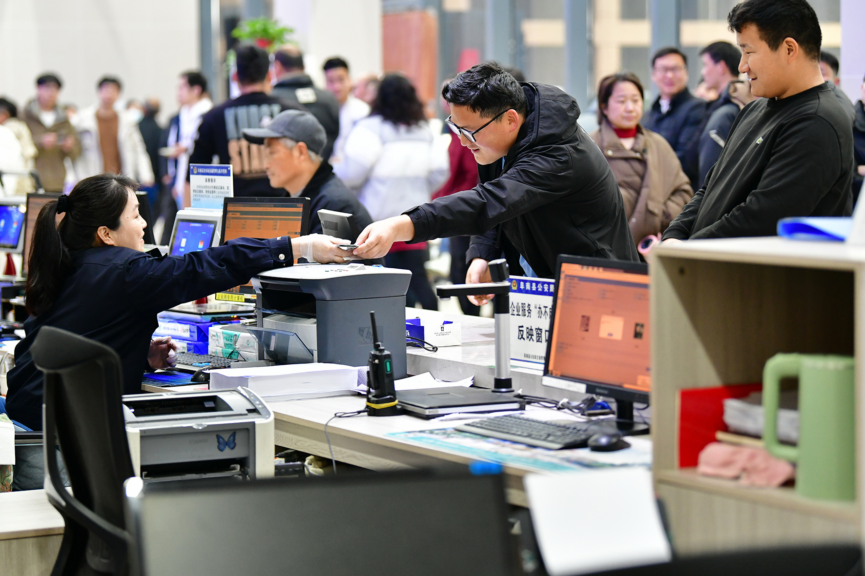 2月18日,安徽省阜南縣公安局交管大隊車管所工作人員在為群眾辦理車駕管業(yè)務。春節(jié)假期結(jié)束第一天,阜南縣公安局交管大隊車管所服務大廳內(nèi)迎來業(yè)務高峰,車管所開啟“延時服務”工作模式,全力保障業(yè)務辦理高效有序,為群眾紓困解難。