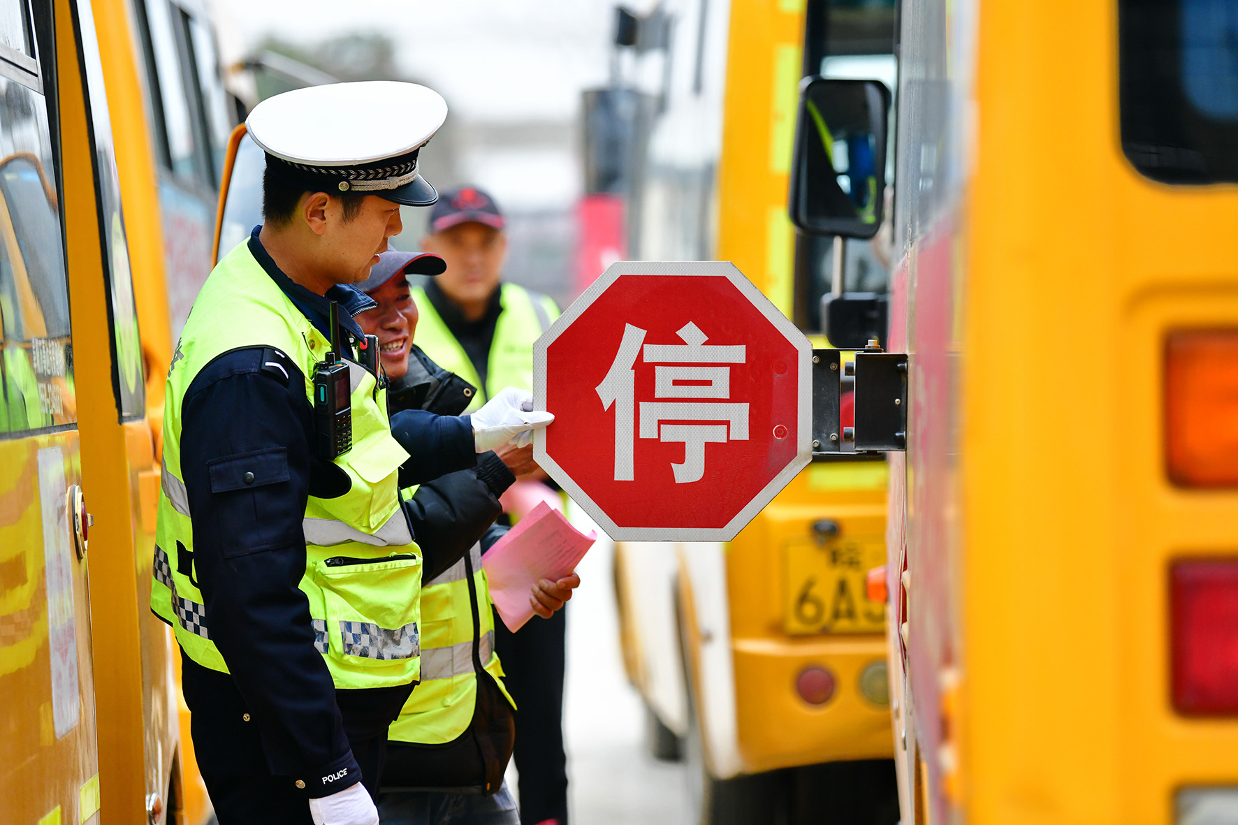 2月19日,安徽省阜南縣公安局交管大隊(duì)民警在檢查校車安全設(shè)施。開學(xué)臨近,阜南縣公安局交管大隊(duì)組織民警對全縣各中小學(xué)校校車進(jìn)行全面檢查,保障學(xué)生乘車安全。