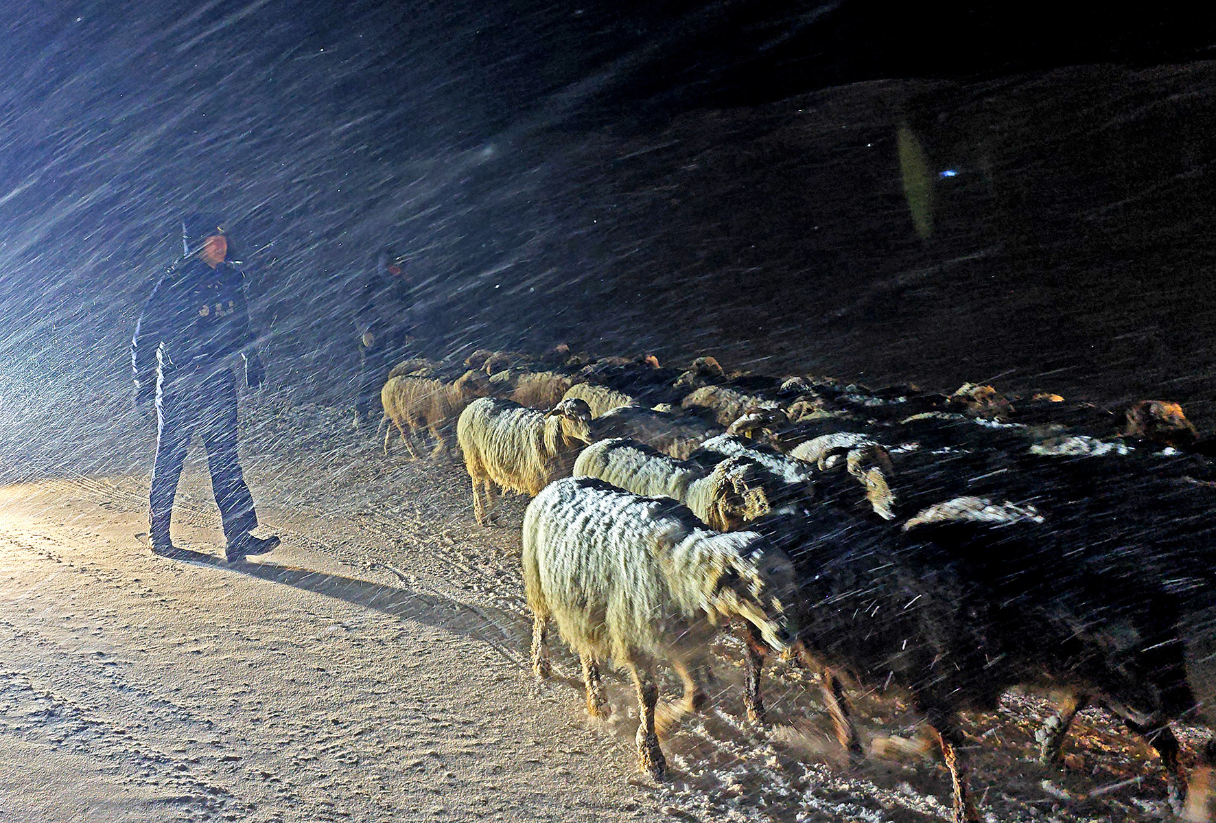 2月16日晚,新疆伊犁夏特邊境派出所接到牧民轉(zhuǎn)場途中遭遇暴風(fēng)雪被困的報警求助,民警們經(jīng)過三個小時的長途跋涉,成功將牧民和1000余只牲畜平安護送至定居點。