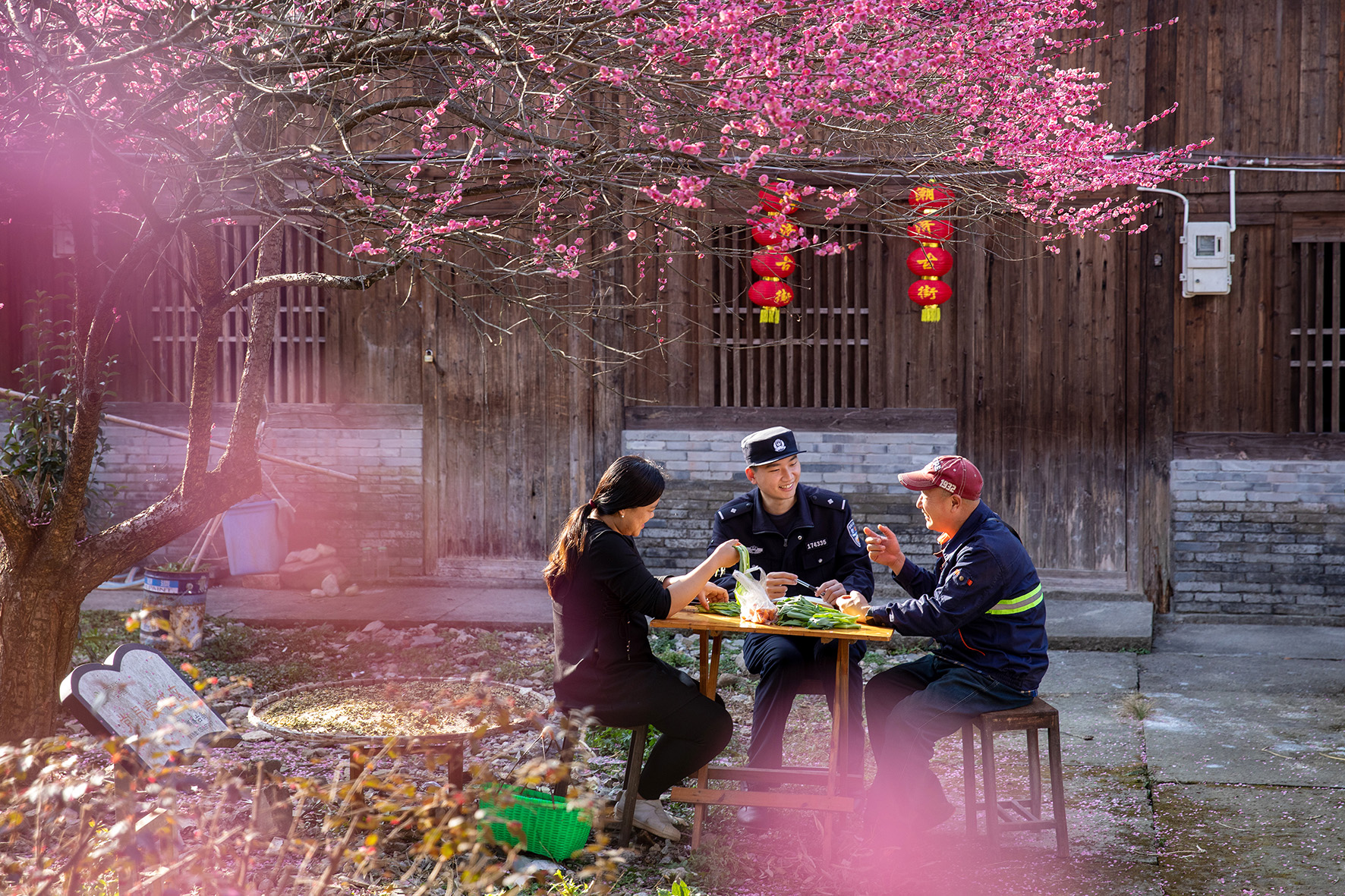 2月14日,浙江省臺州市公安局黃巖分局北洋派出所民警來到北洋鎮(zhèn)潮濟老街,給村民送上新春的祝福,征求新一年對公安工作的意見和建議。