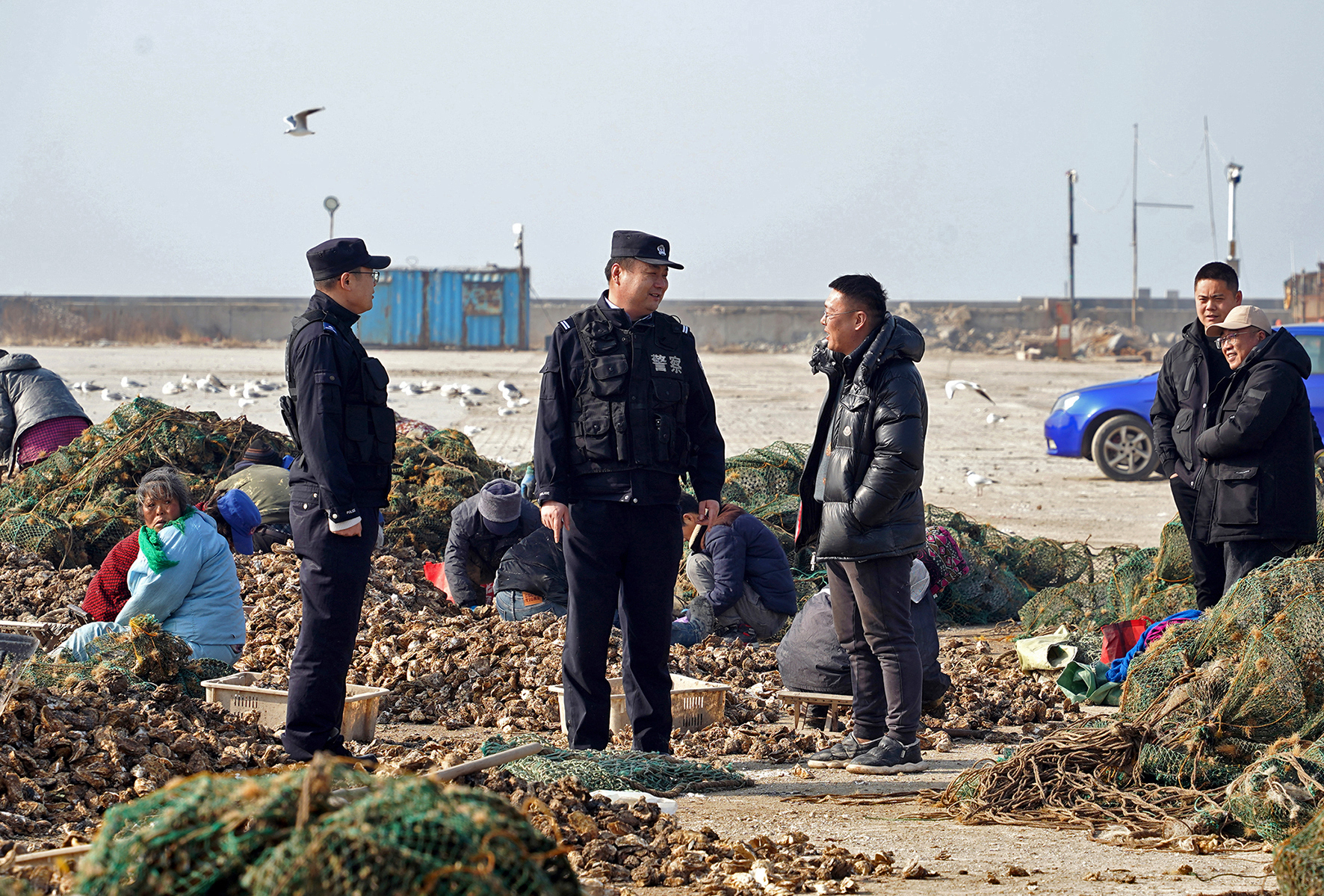 2月12日,山東省招遠(yuǎn)市公安局辛莊海岸派出所組織警力在沿海一線持續(xù)開展巡邏提示,做好安全防范,讓養(yǎng)殖戶安全生產(chǎn)、安心過節(jié)。