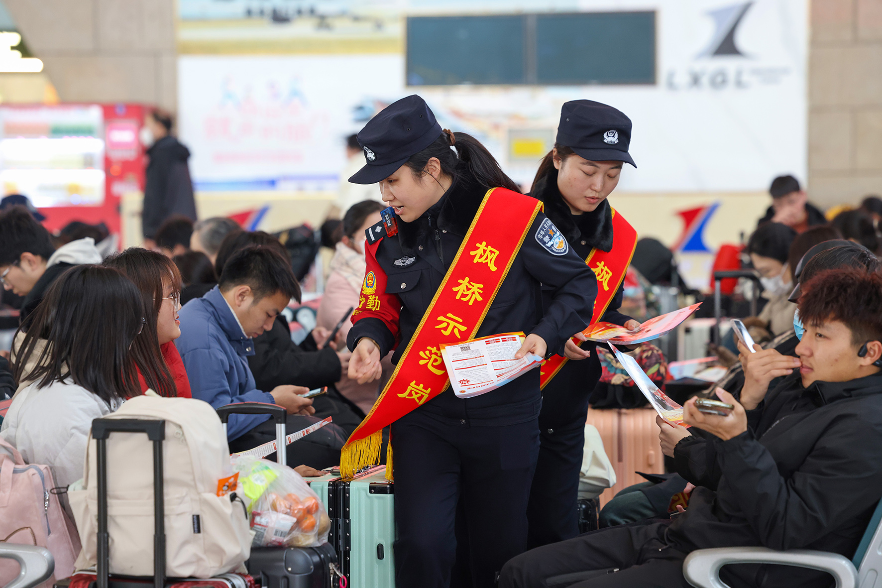 2月23日,石家莊火車站客流激增。石家莊鐵路公安處石家莊站派出所強(qiáng)化站區(qū)治安管控力度,向旅客進(jìn)行反詐宣傳,確保站區(qū)秩序平穩(wěn)。