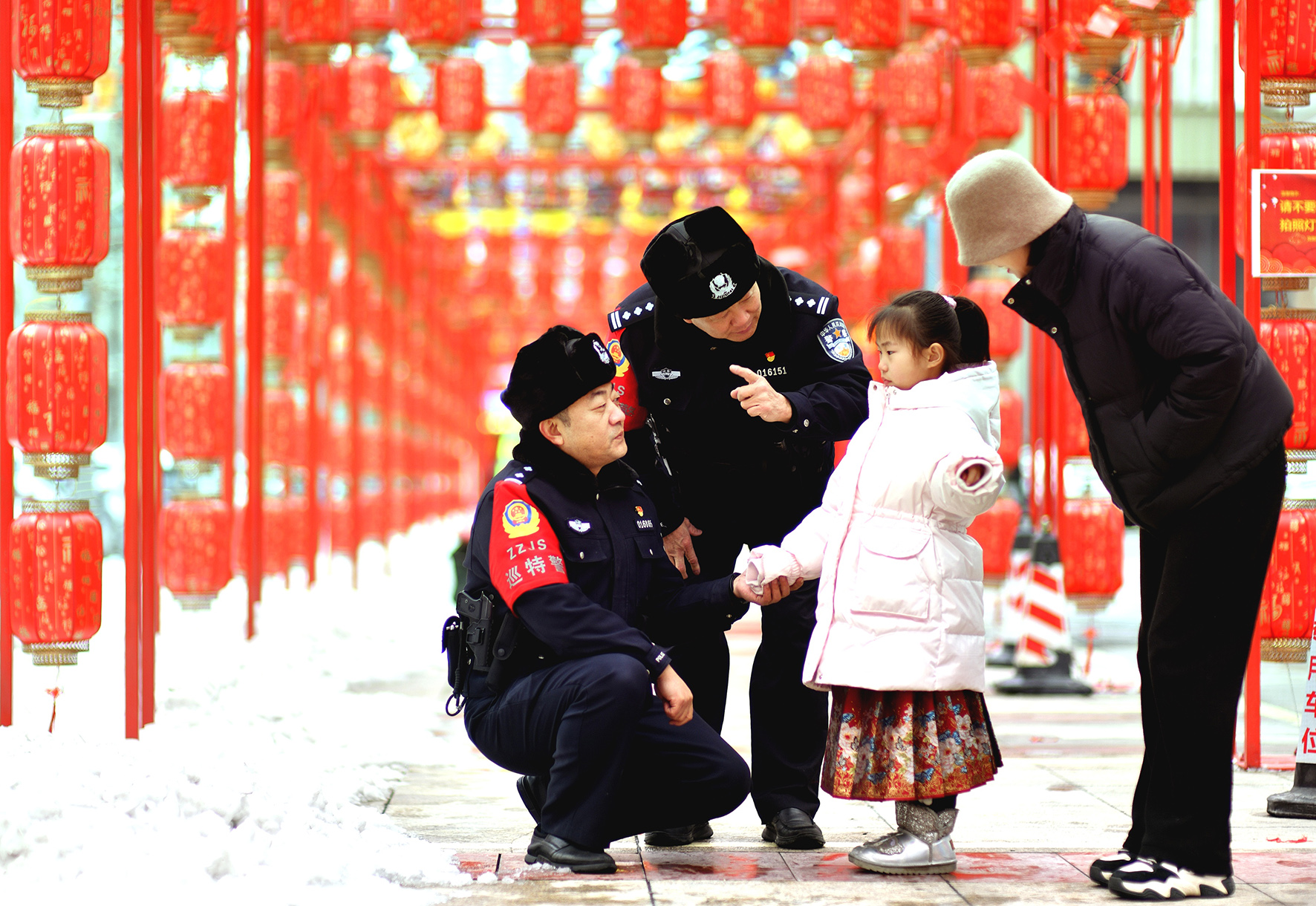 2月23日,河南省鄭州市公安局金水分局巡特警隊(duì)員在轄區(qū)鬧元宵場地,向群眾宣講節(jié)日安全防范知識(shí)。
