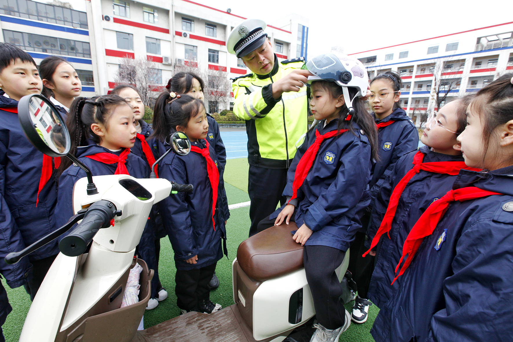 3月21日,在第29個“全國中小學(xué)生安全教育日”來臨之際,安徽省合肥市公安局交警支隊公巡一大隊民警走進(jìn)習(xí)友路小學(xué),開展交通安全進(jìn)校園活動。