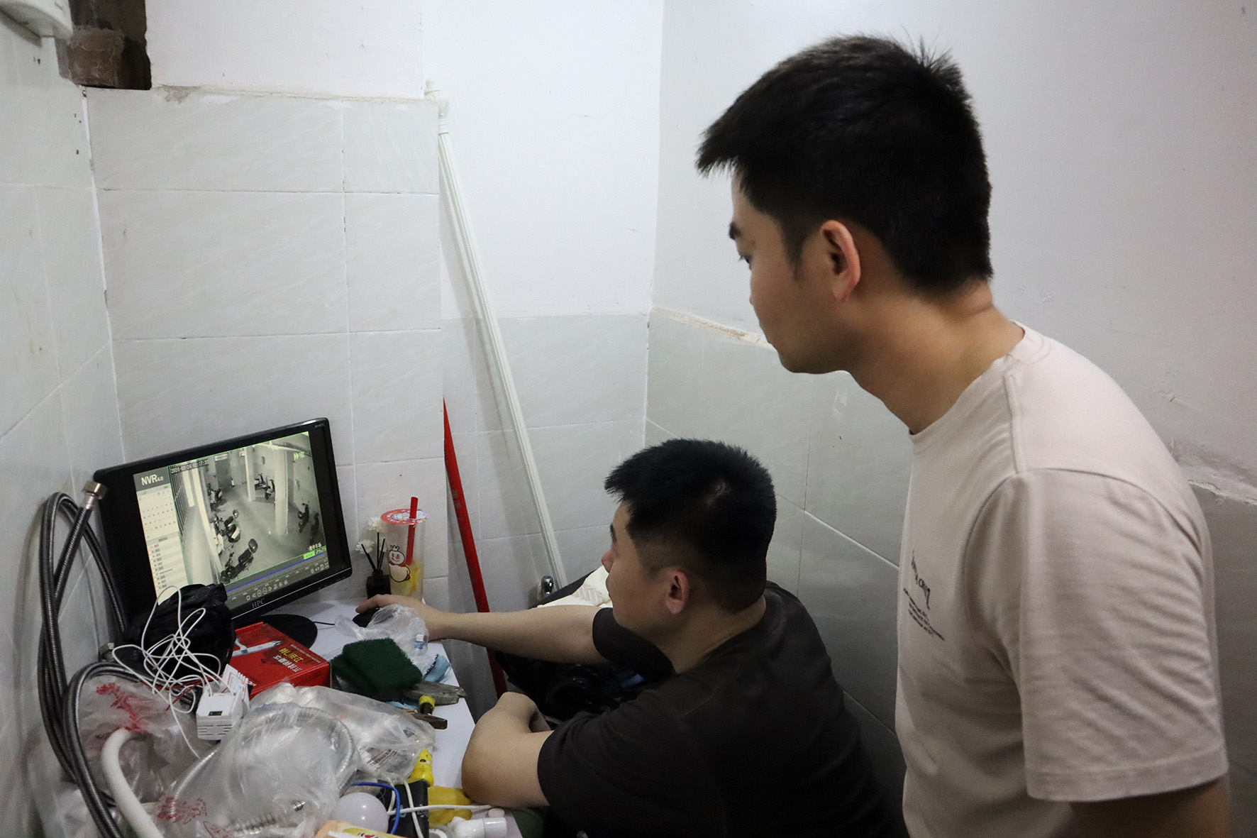 3月25日,辦案民警在廣西南寧一出租房監(jiān)控室查看電詐嫌疑人張某的行動(dòng)軌跡。