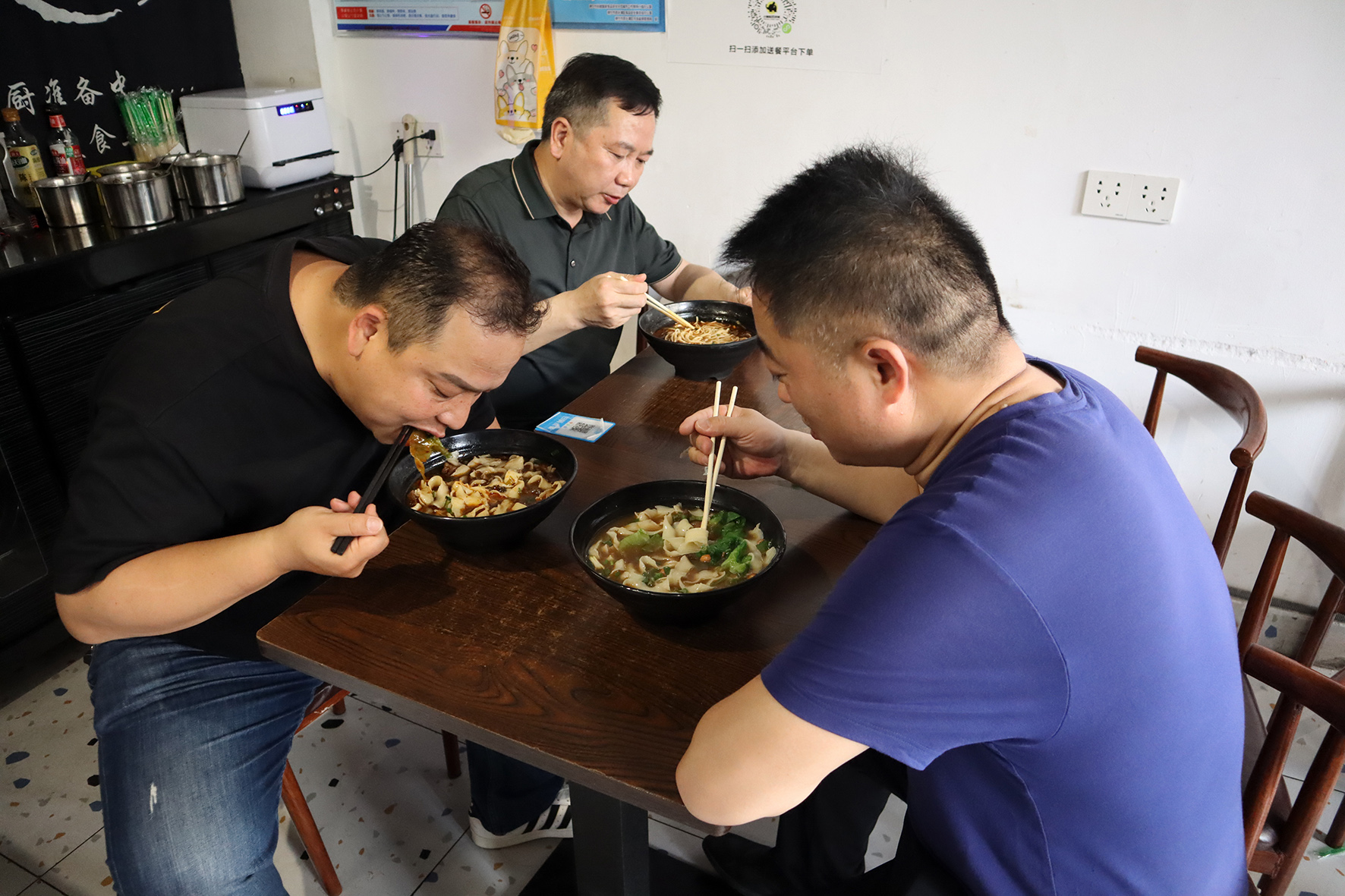 3月25日,市中區(qū)分局與廣西南寧警方辦案民警在蹲點(diǎn)守候期間輪流吃飯。