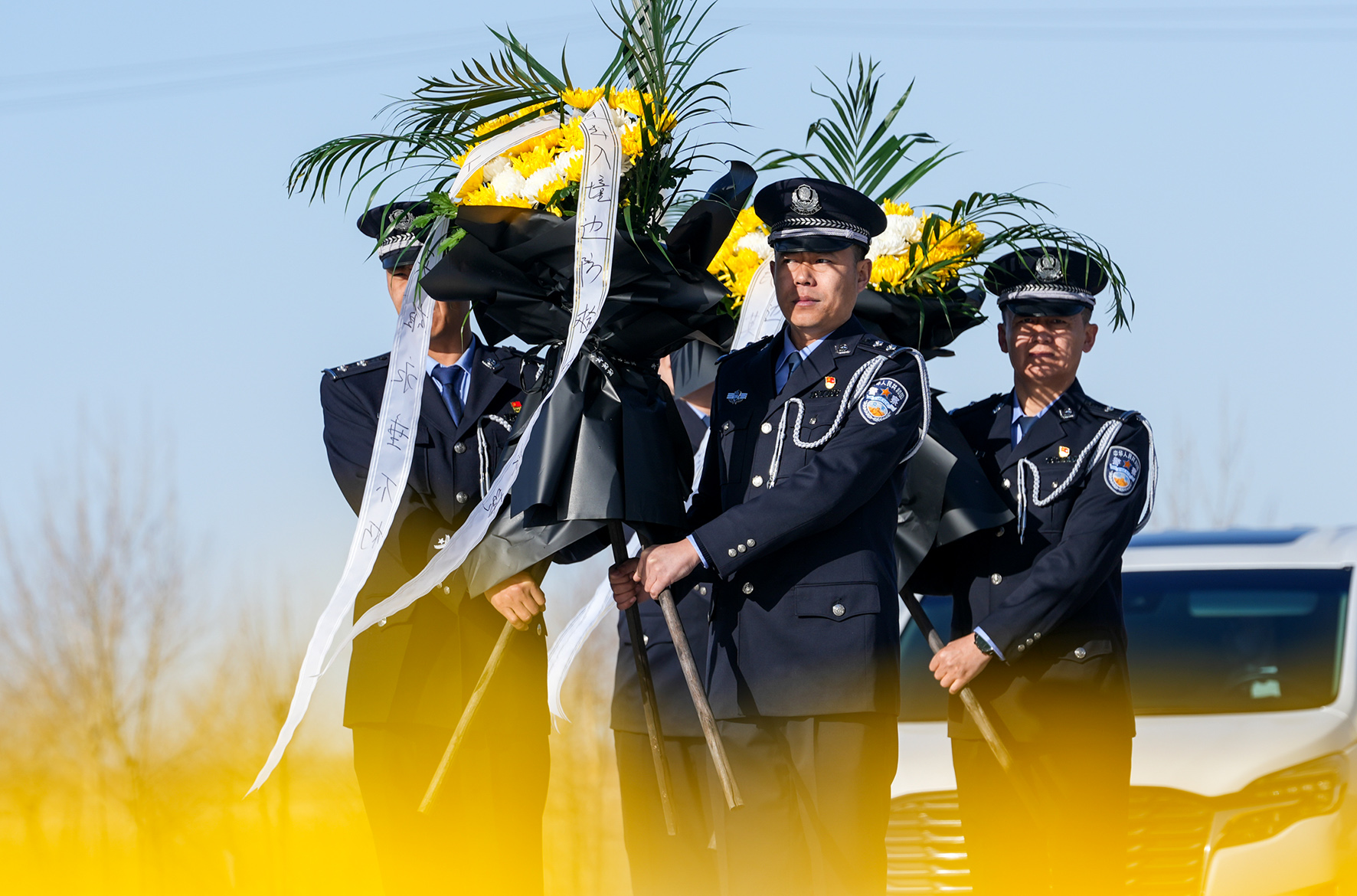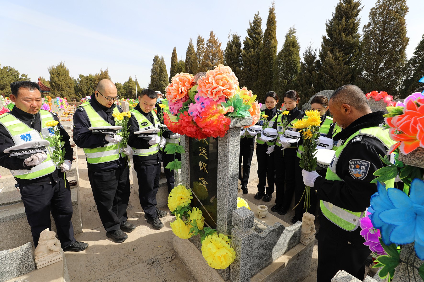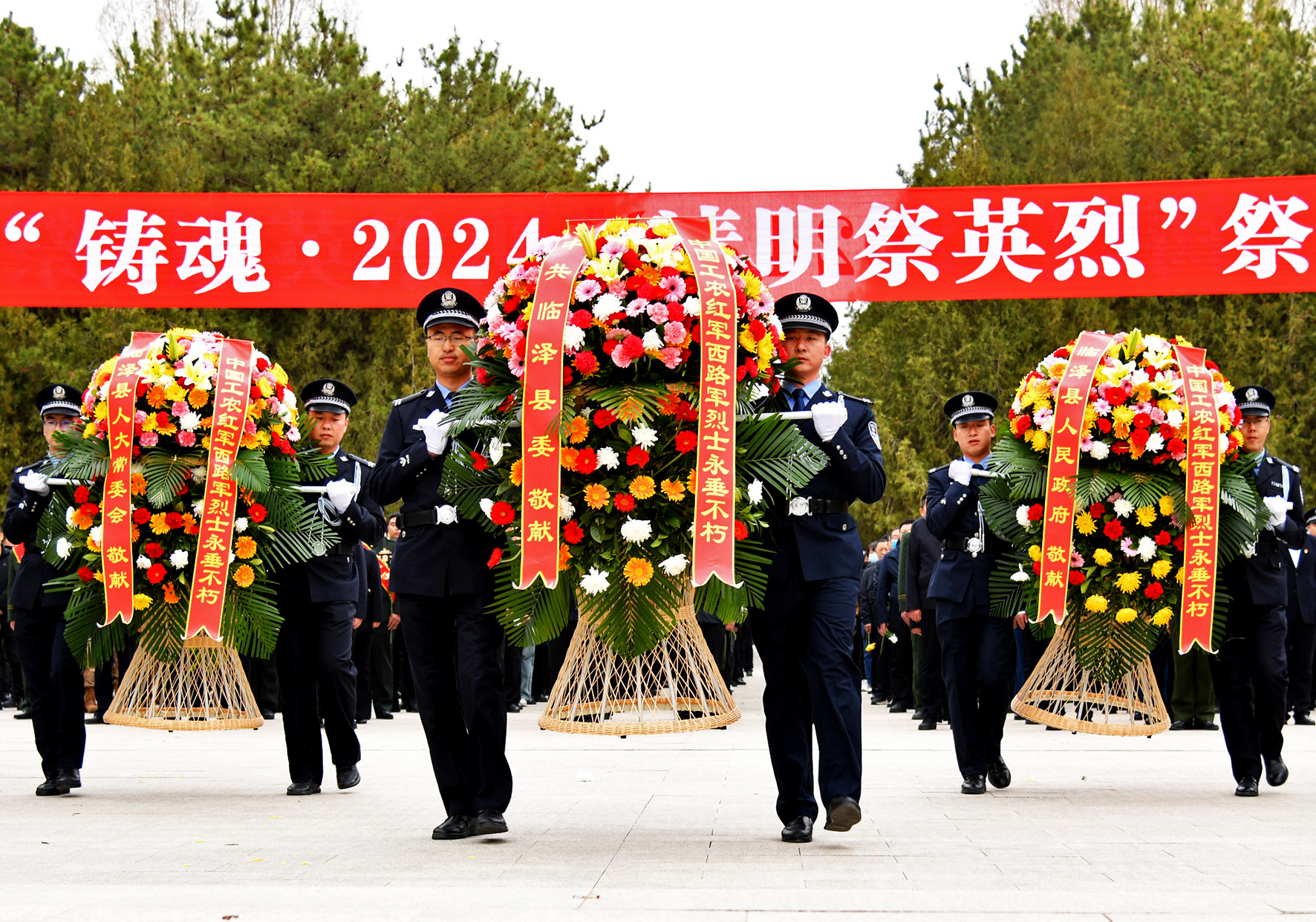4月3日,甘肅省臨澤縣公安局民輔警與全縣黨員干部群眾舉行“鑄魂·2024清明祭英烈”祭掃活動。